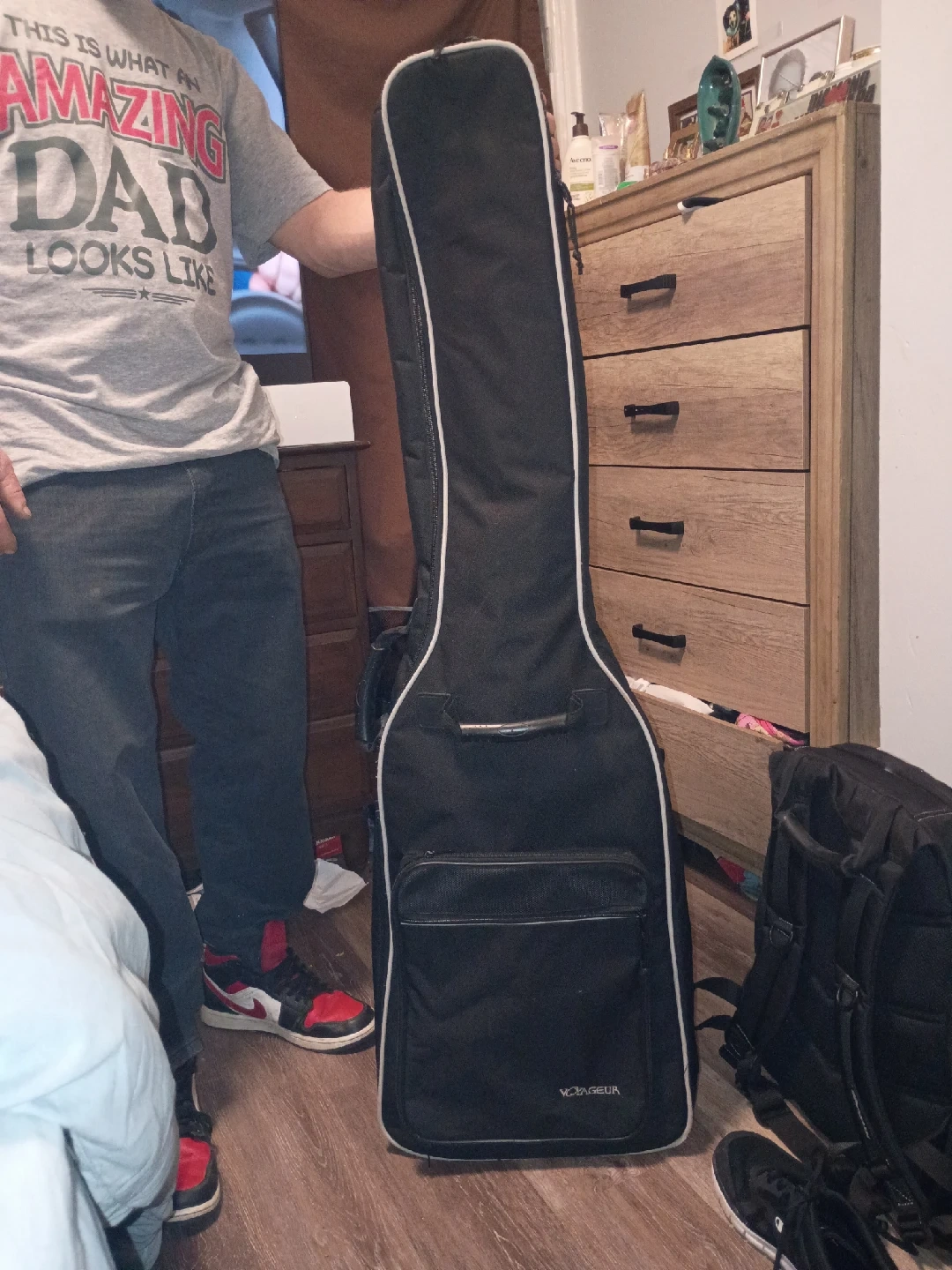 20Selling a black Vagaseh guitar case. It's in good condition and ready to protect your guitar during transport or storage! It features a convenient carrying handle and backpack straps for easy portability