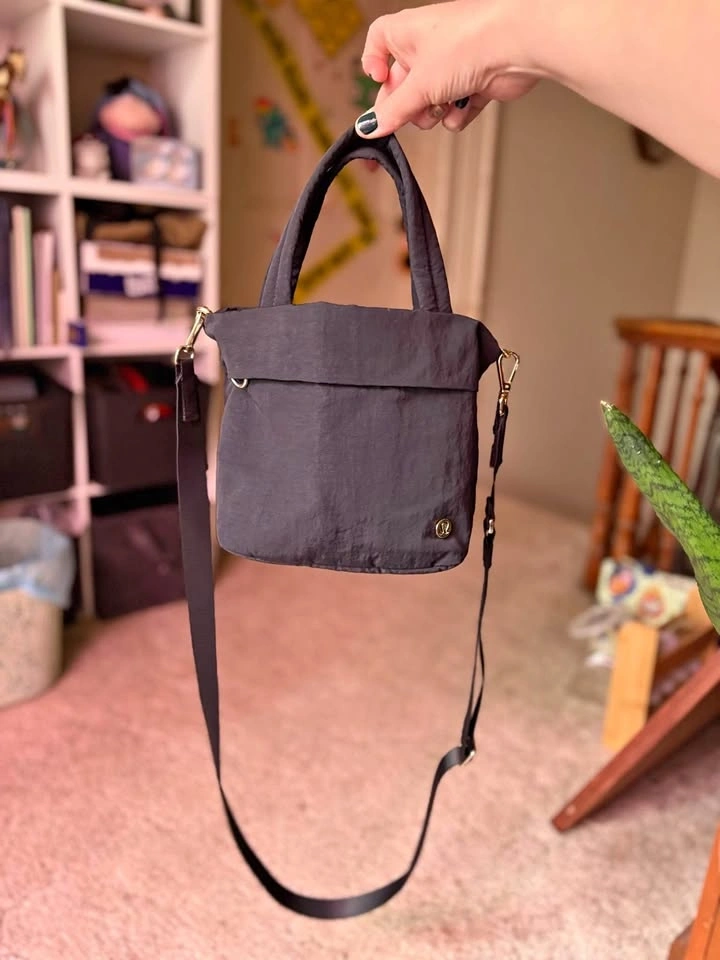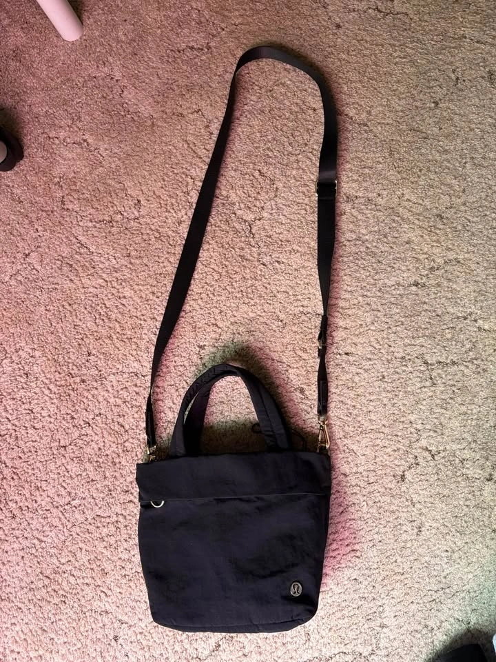 On My Level Small Tote Bag 5L in black and gold! Whether your morning starts with a class or errands, this small version of our On My Level Tote is always a winner. It's the perfect size for your journal, phone, and snacks. Located near Kennedy road and Stouffville road in the Markham Stouffville area. No shipping. First come, first served.