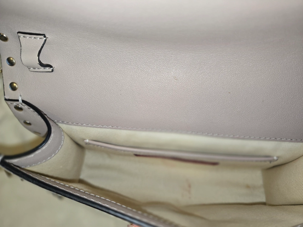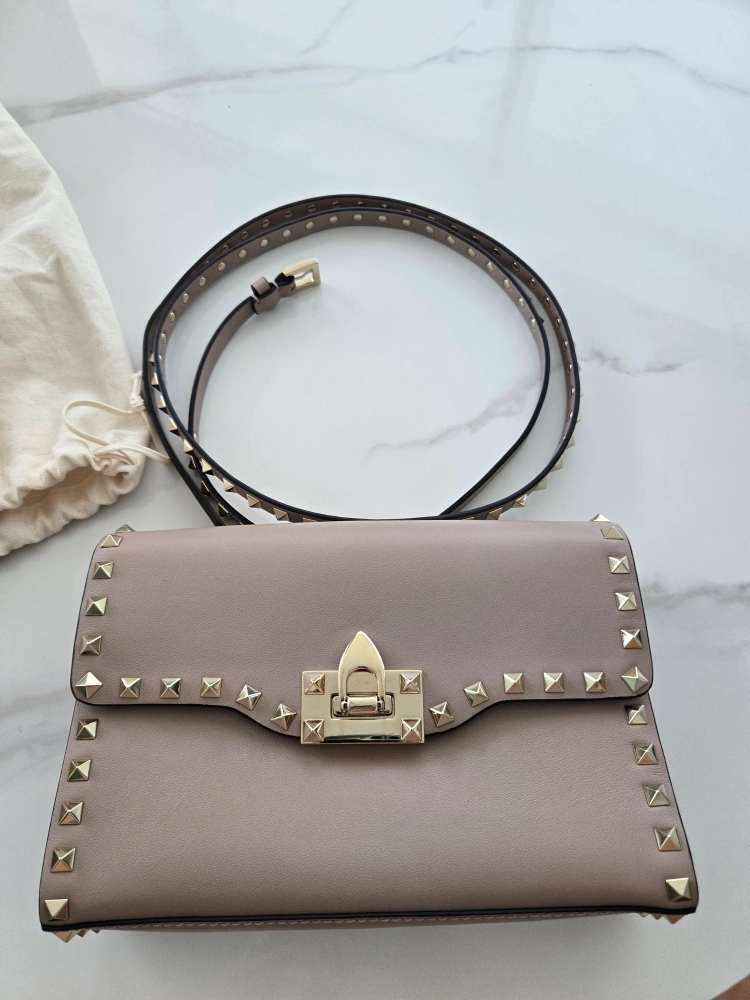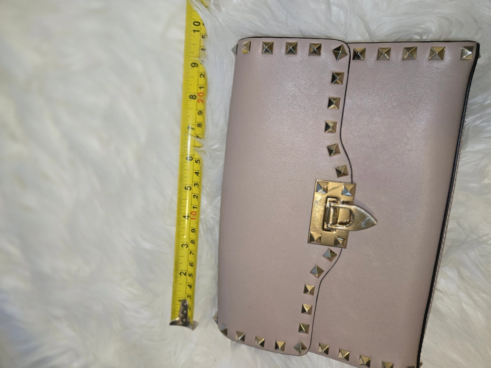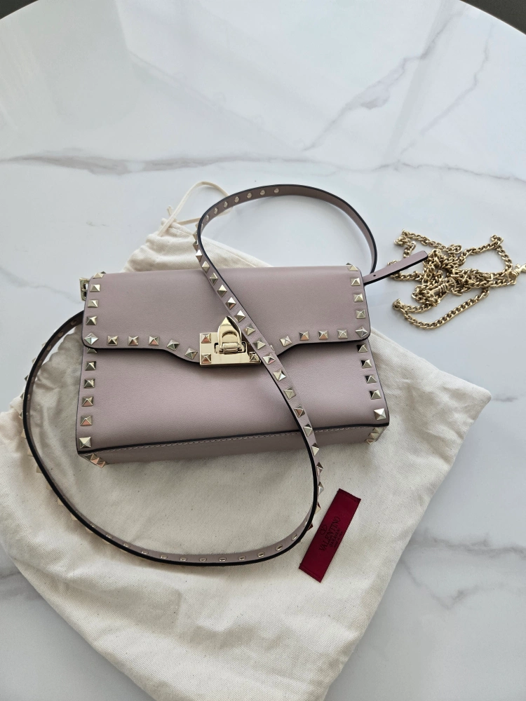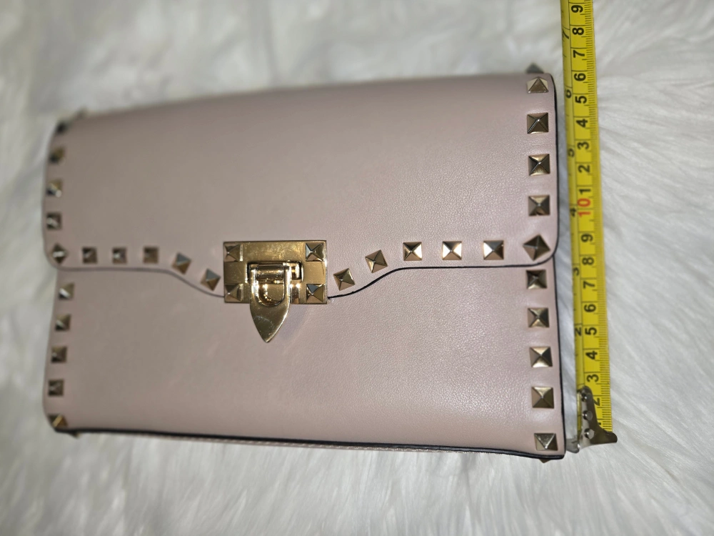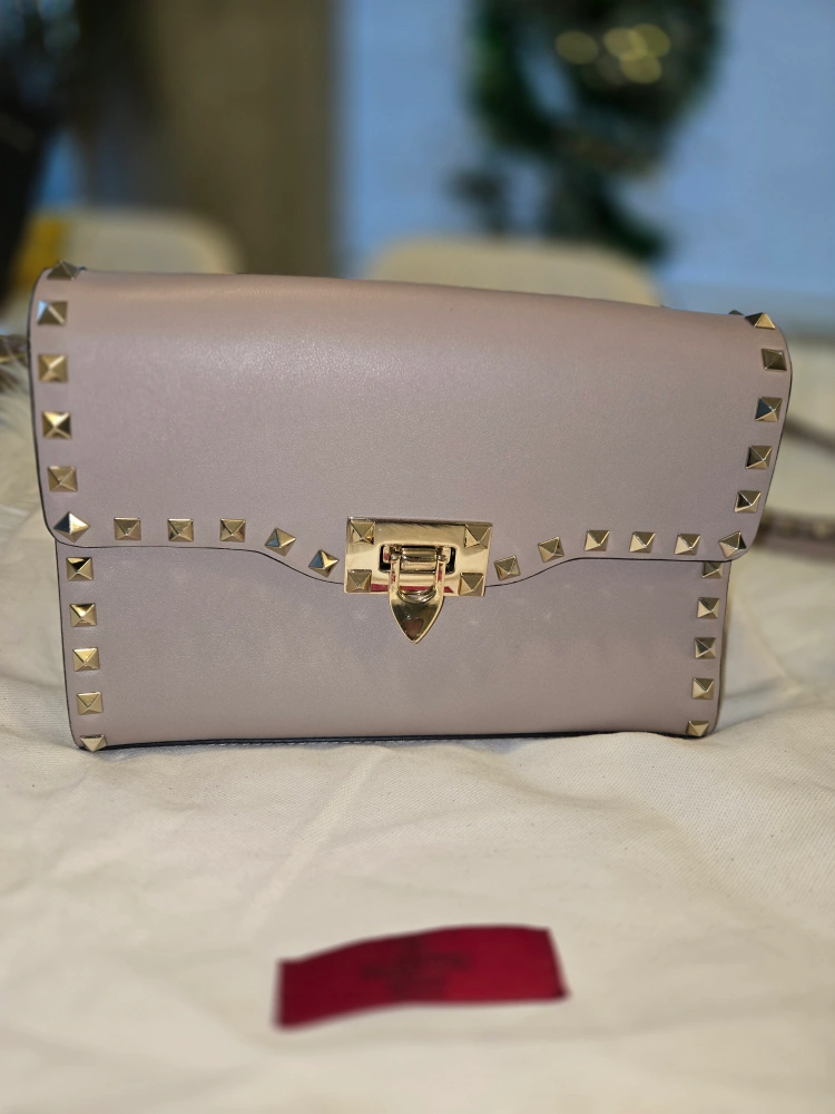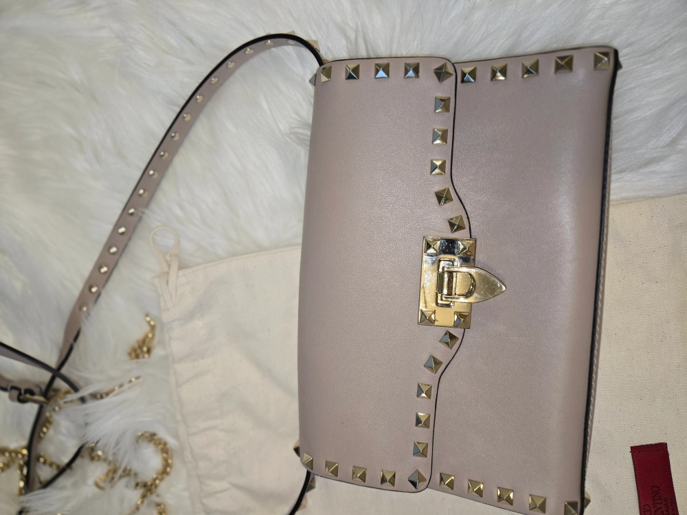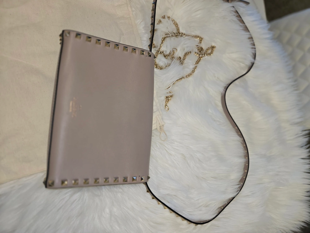 baby pink leather crossbody bag. Gold-tone Rockstud hardware. Comes with dust bag and the original strap. purchased from matchesfashion.com few years ago proof of purchase available cosmatic stains inside no flaws outside good condition