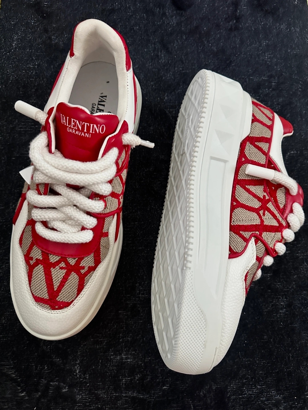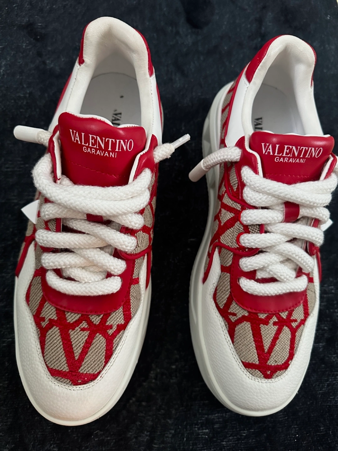 19Selling a pair of Valentino Garavani sneakers. They are white with red accents and feature the Valentino logo. Perfect for adding a touch of luxury to your casual outfits! No box!