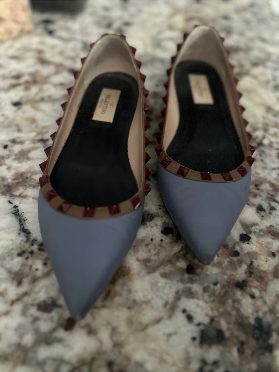 10Selling a pair of Valentino Rockstud ballerina flats in size 6. They're a stylish and comfortable option for everyday wear, adding a touch of elegance to any outfit. These flats feature the iconic Rockstud detailing that Valentino is known for. Perfect for anyone who loves designer footwear!