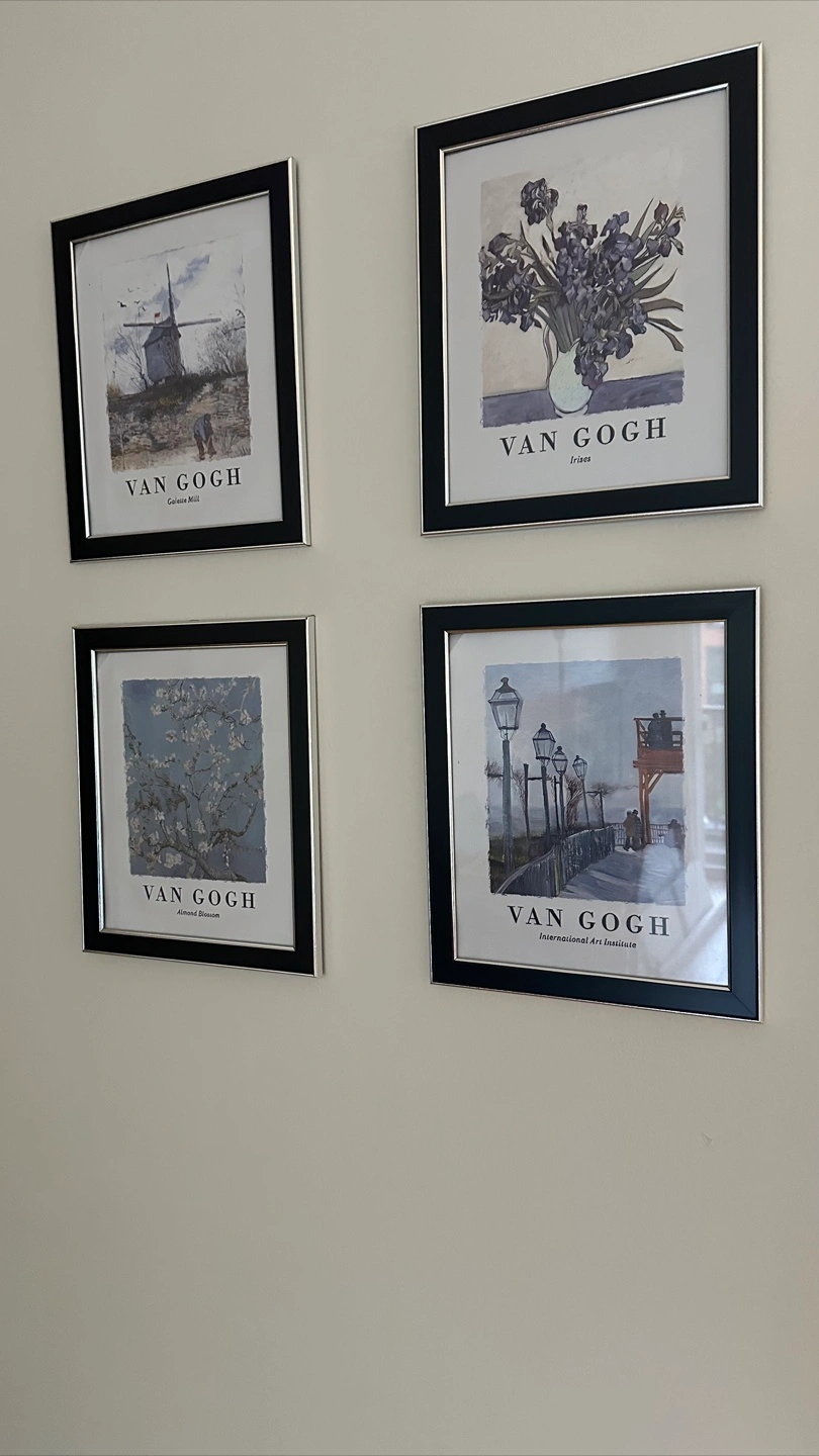 Selling a set of framed Van Gogh prints. The prints feature Almond Blossom, Irises, and other classic Van Gogh paintings. They're in great condition and ready to add a touch of art to your home!