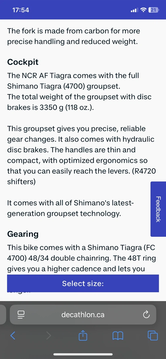 17Selling a Van Rysel road bike that's in great shape! Perfect for hitting the road or enjoying a leisurely ride around town. Shimano tiagra group set with hydraulic brakes and Carbon Fork.