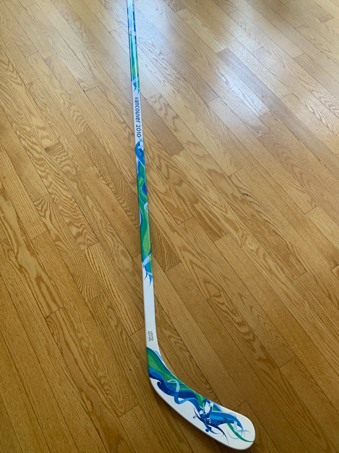 10Selling a Vancouver 2010 Limited Edition hockey stick. It has a unique design with blue and green accents. Perfect for collectors or hockey enthusiasts!