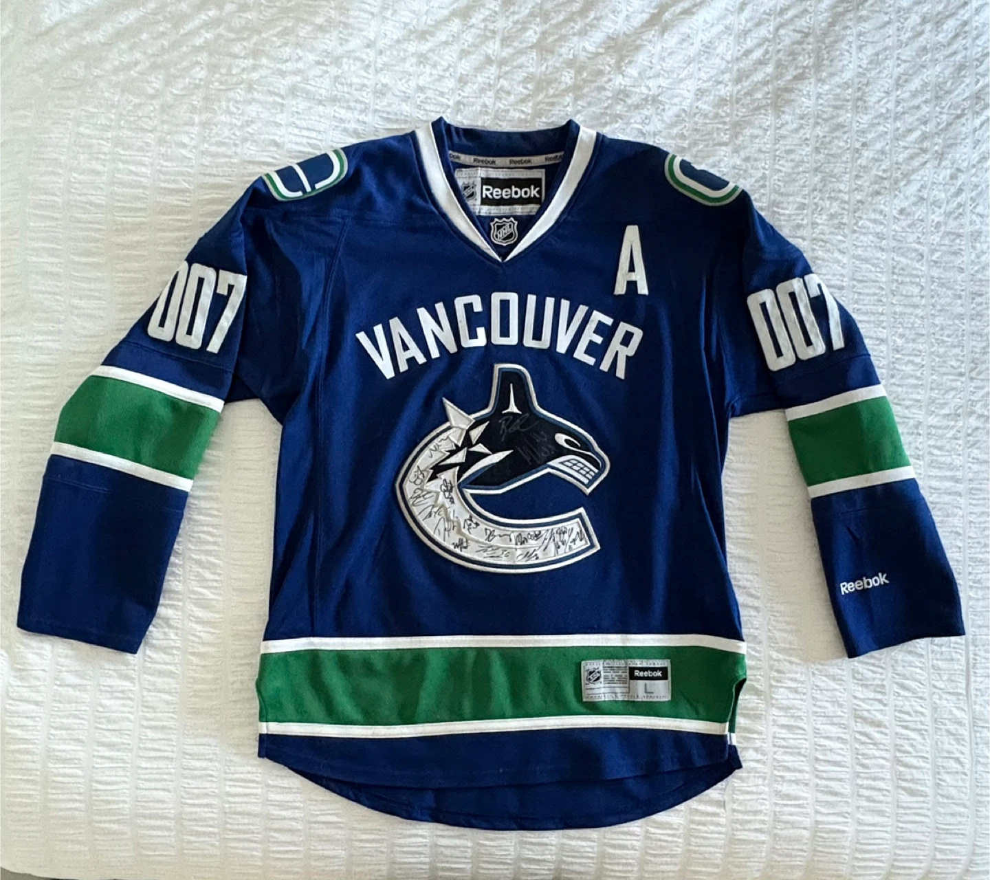 Selling a Reebok signed team Vancouver Canucks jersey in size L/G. Authentication can be verified if requested