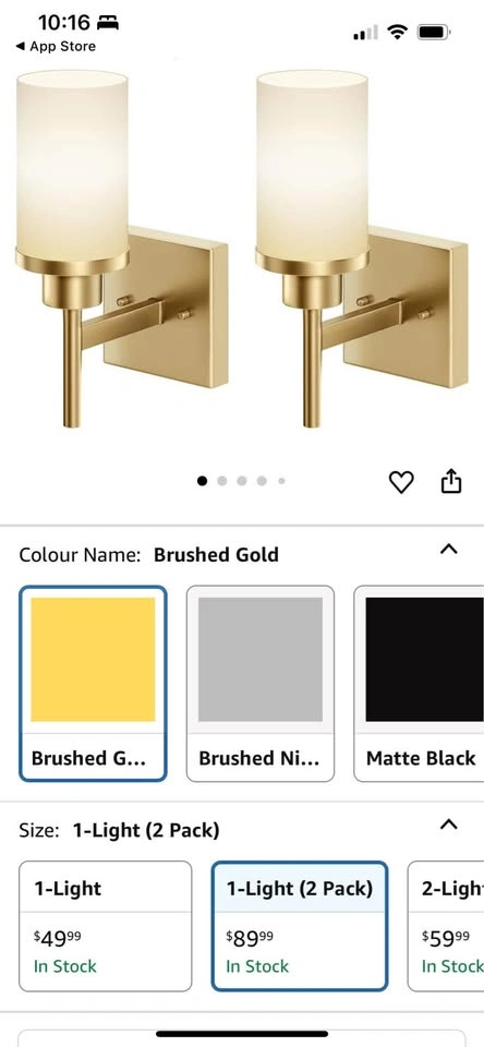 65Light - Vanity Lighting Fixtures with White Frosted Glass Shade, Modern Gold Wall Lamps for Bathroom Mirror Bedroom Living Room Porch, 2 Pack. Pickup Downtown