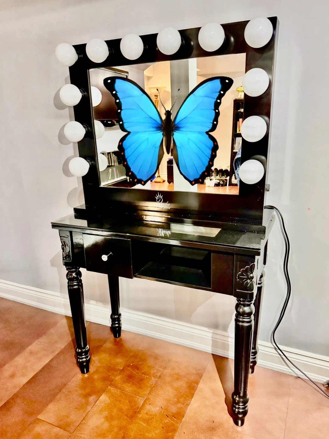 10Selling a vanity table with a lighted mirror. It's in great condition and perfect for getting ready! The black finish gives it a sleek and modern look for any room