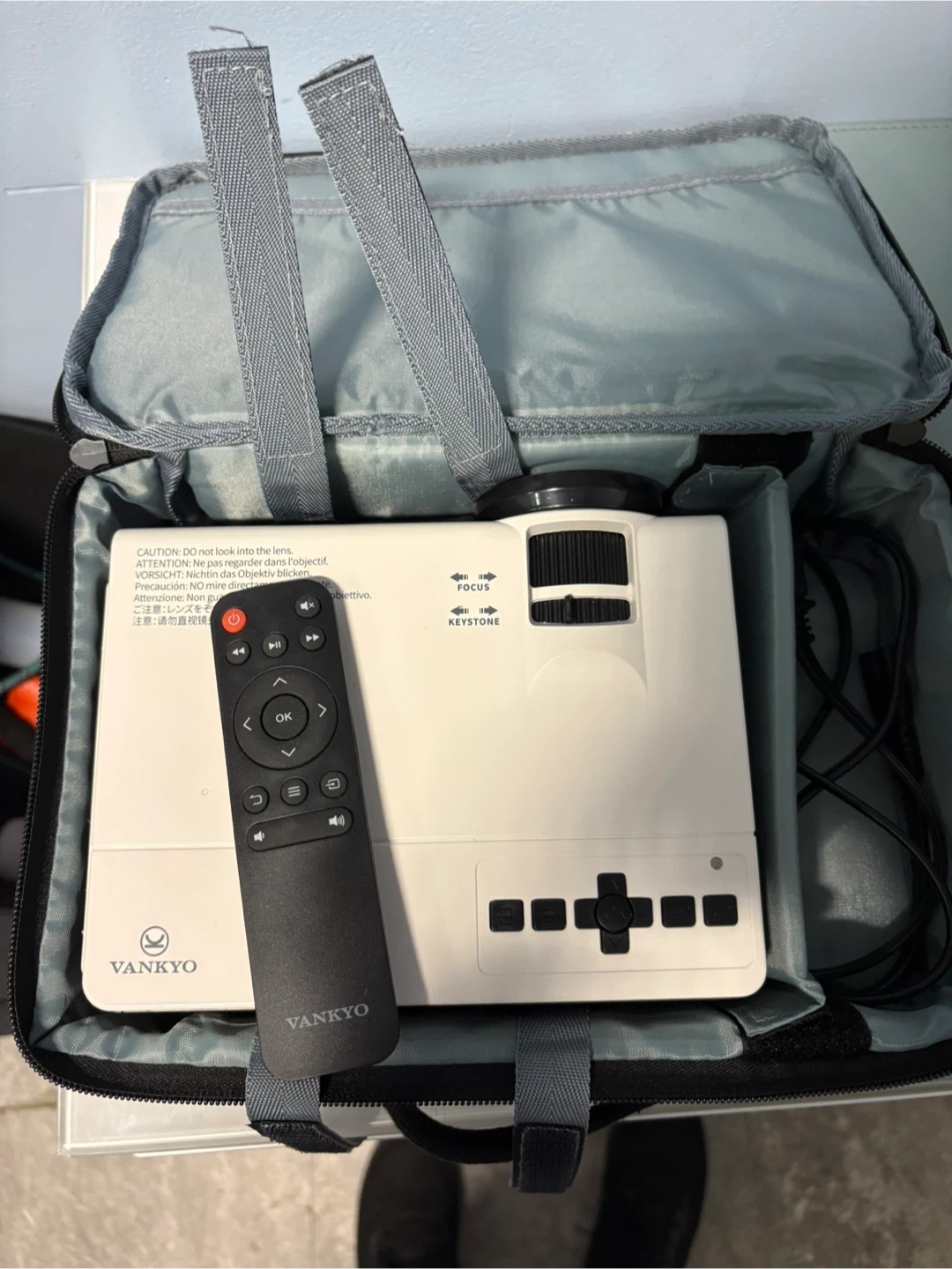 Selling a Vankyo video projector, comes with the original box! Includes the projector, remote, and carrying case. Great for movie nights or presentations!