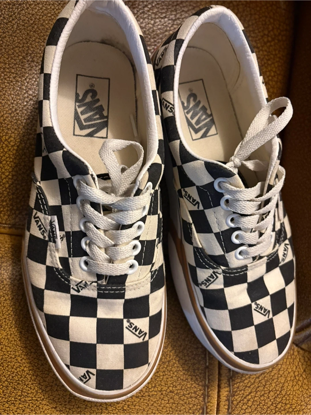 10Selling a pair of Vans platform shoes in the classic checkerboard pattern! They're in great shape and ready for a new home. The size is US Women's 8.5, which is a US Men's 7. These are super stylish and comfy!