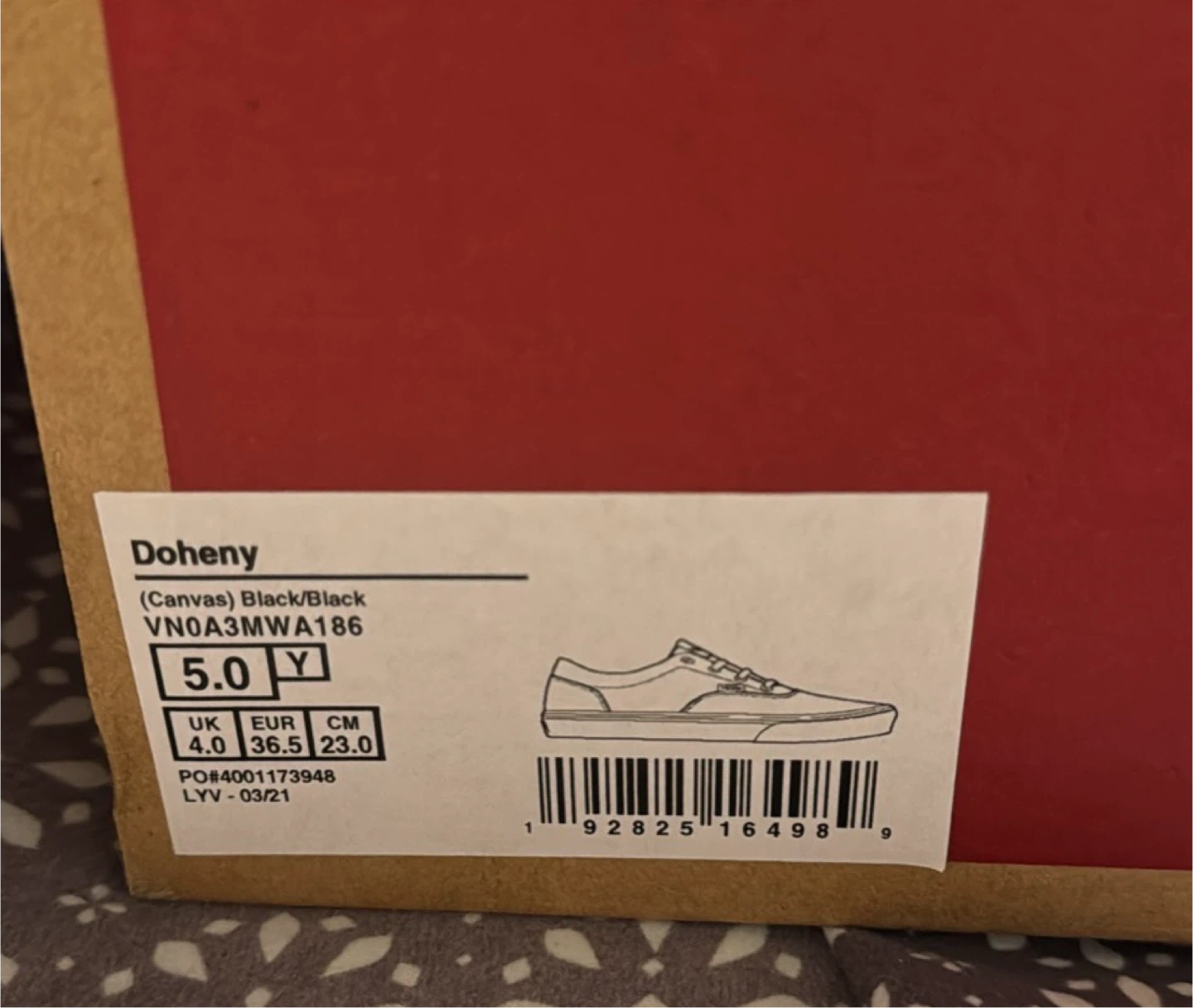 Selling a pair of Vans Doheny shoes in black canvas! They are in great condition and come with the original box. The size is 5Y (youth). Perfect for everyday wear!