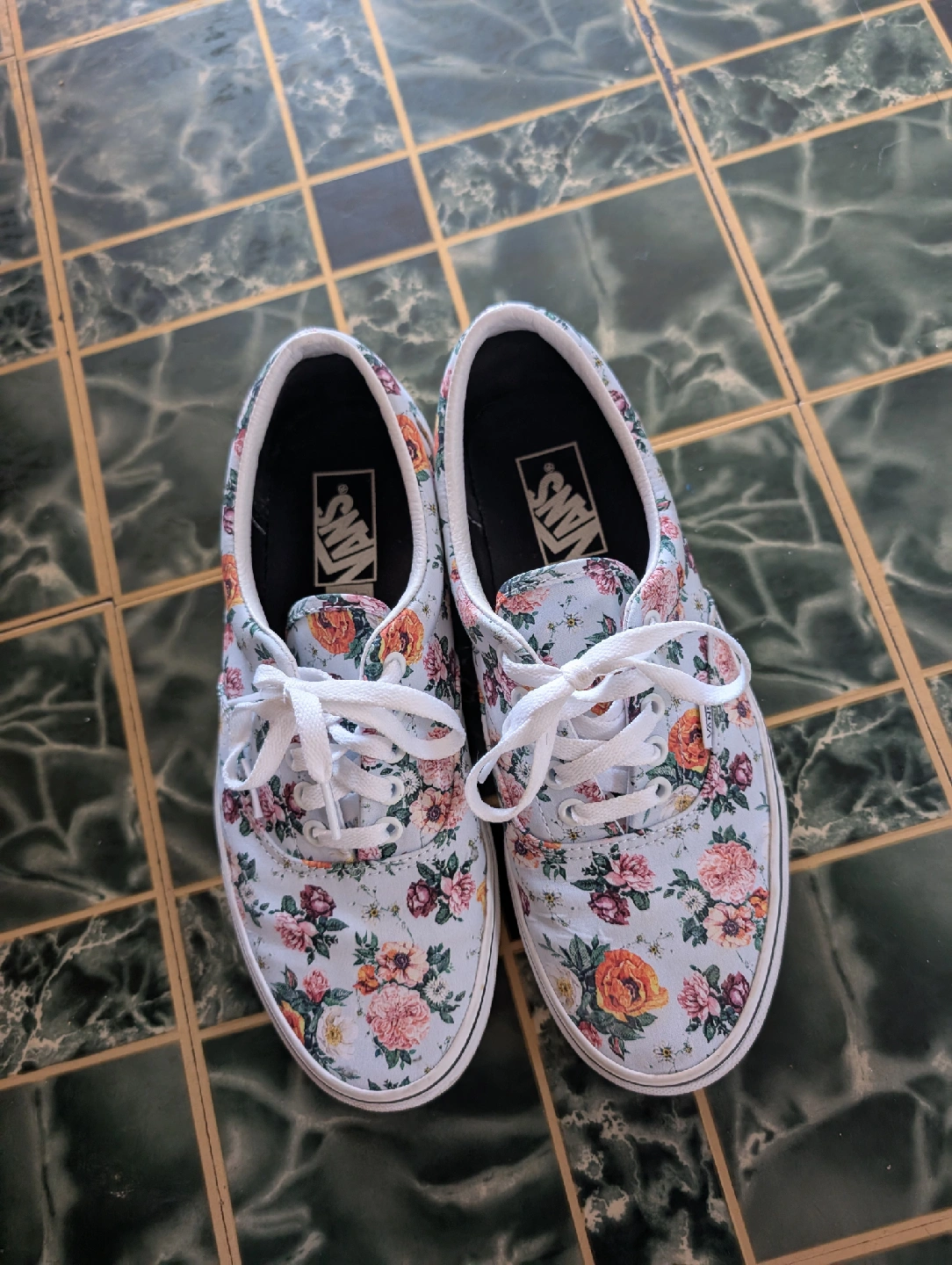 65Selling a pair of size 10 women's Vans sneakers with a lovely floral print. They're in great shape and ready for a new home. These are super comfy and stylish for everyday wear!