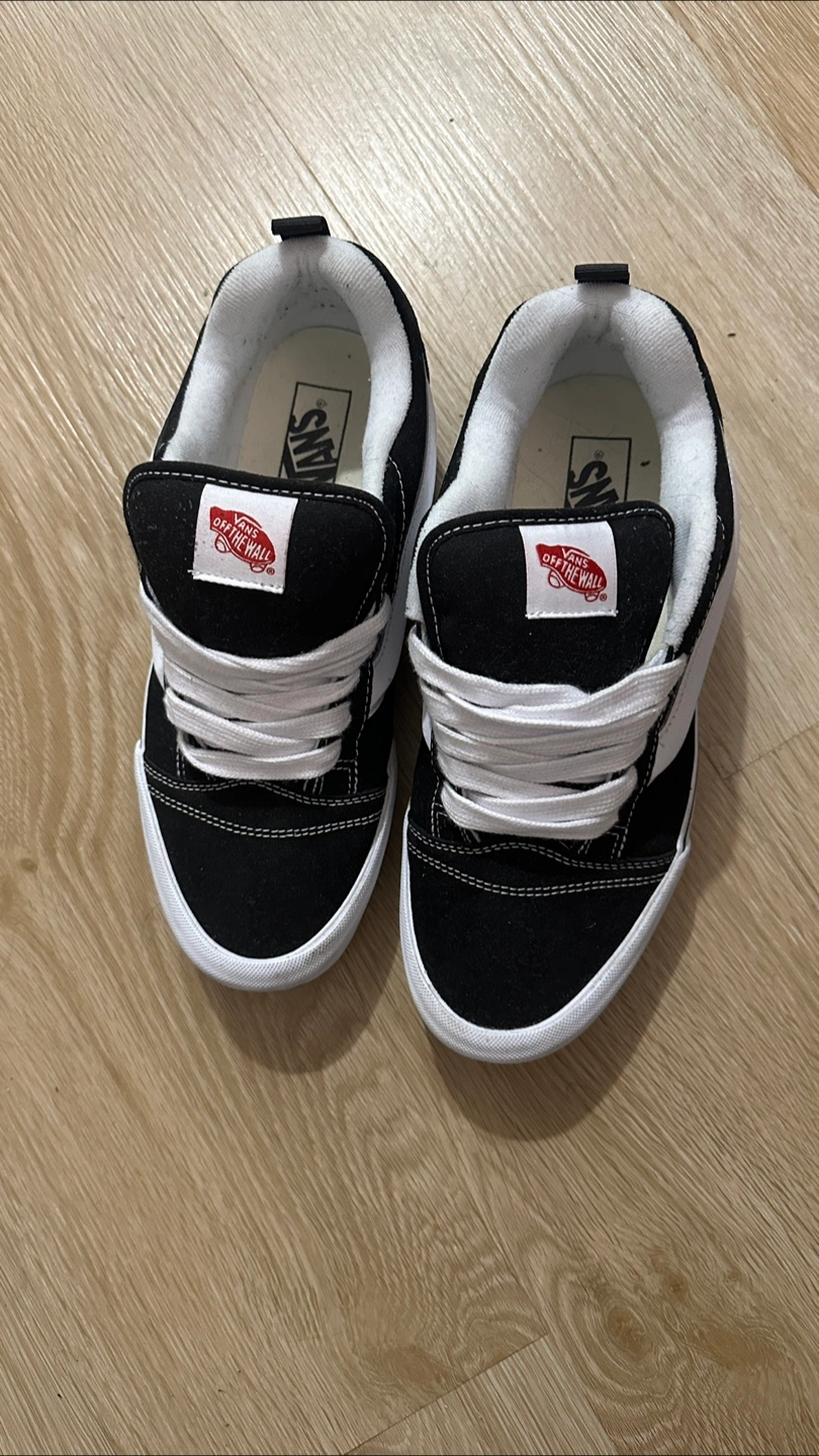 129Used 2 times, Pair of black Vans KNU skate shoes. White accents. White laces. Classic Vans design.