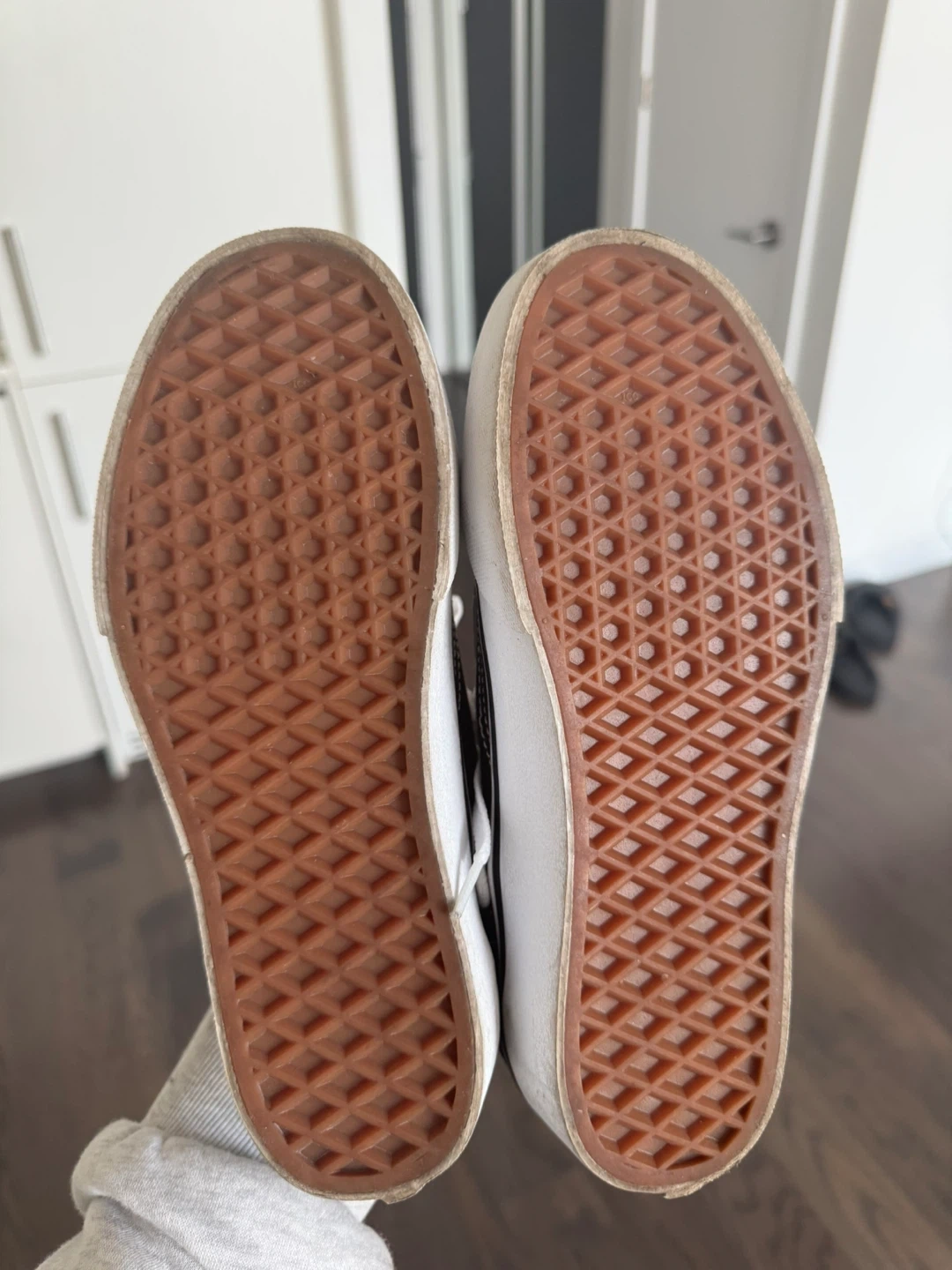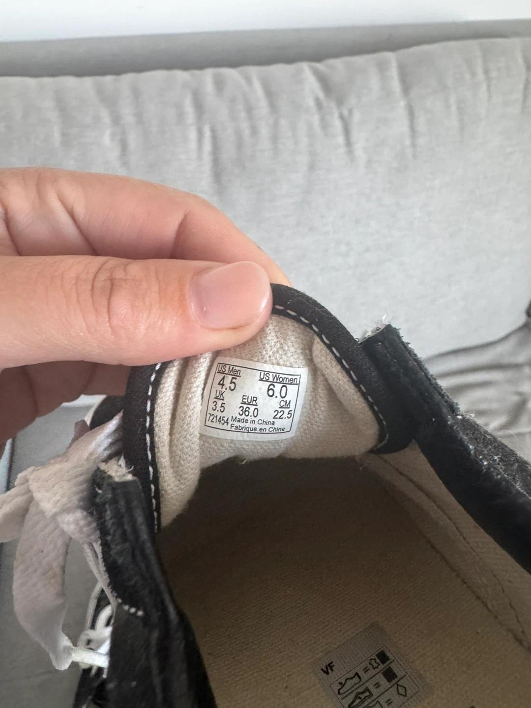 21Selling a pair of Vans Old Skool shoes in black and white. They're in used condition, as you can see from the photos. The size is US Women's 6 / US Men's 4.5 / EUR 36.0 / CM 22.5. Great for everyday wear!