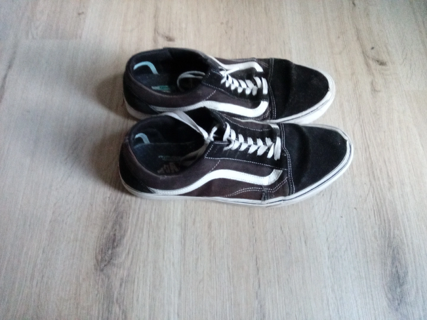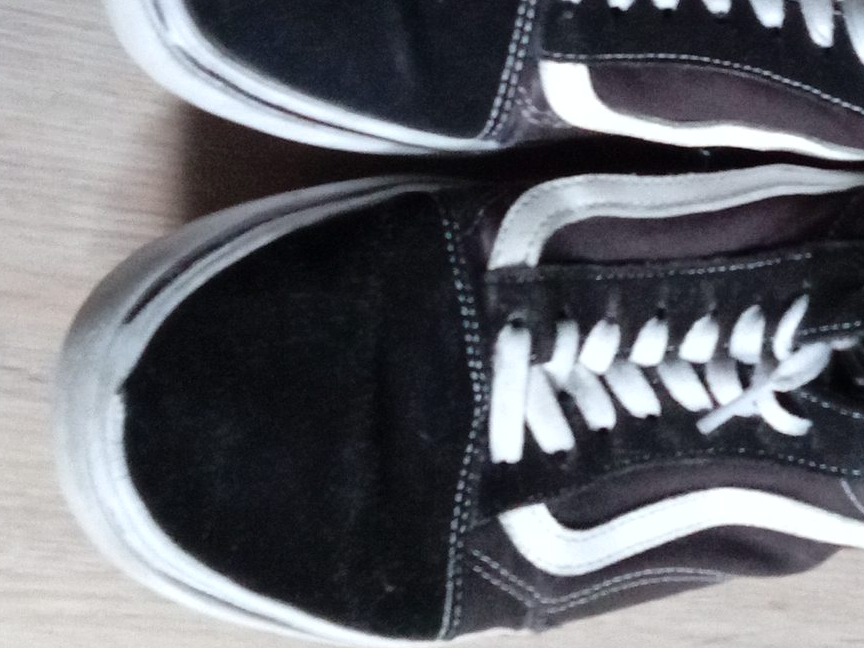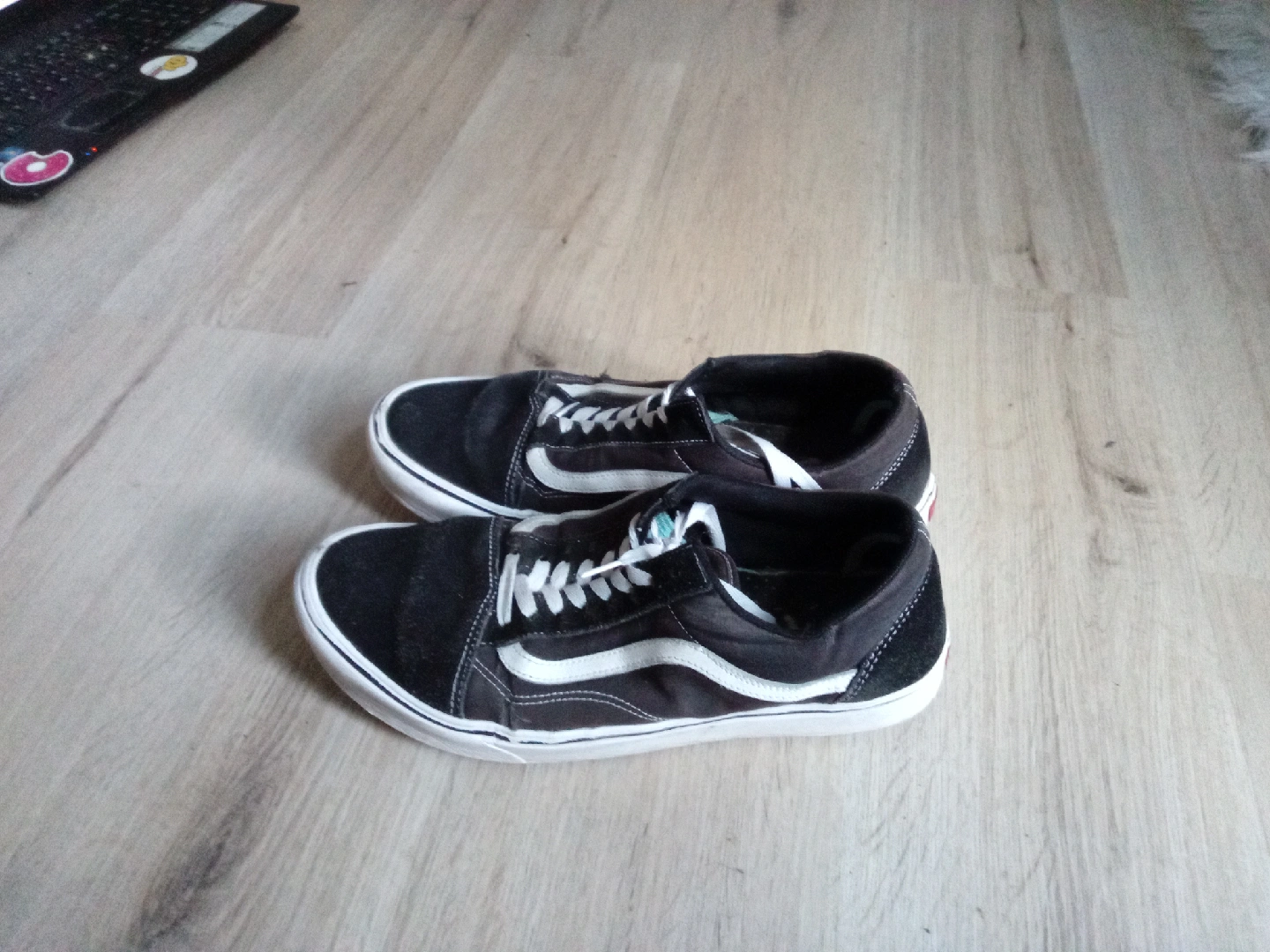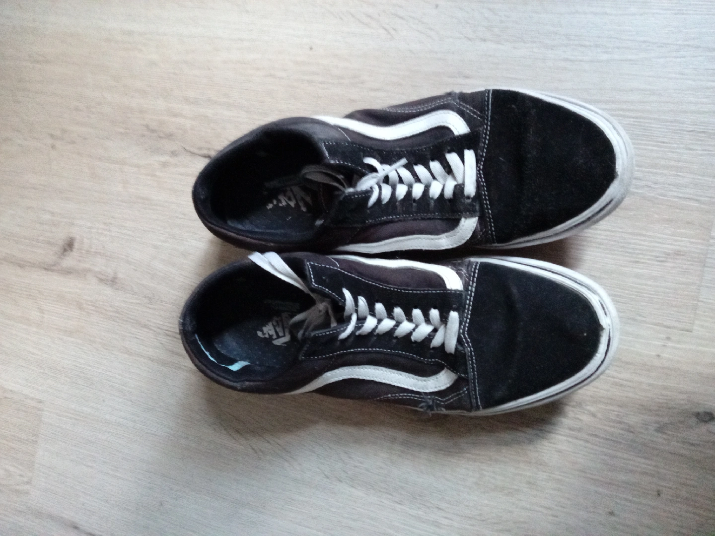 Selling a pair of classic Vans Old Skool sneakers in black and white. They are in good condition and ready for a new home! Size 12