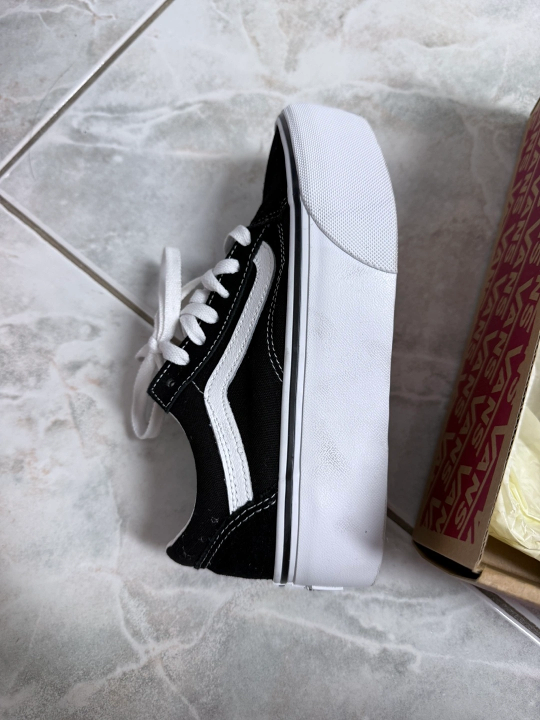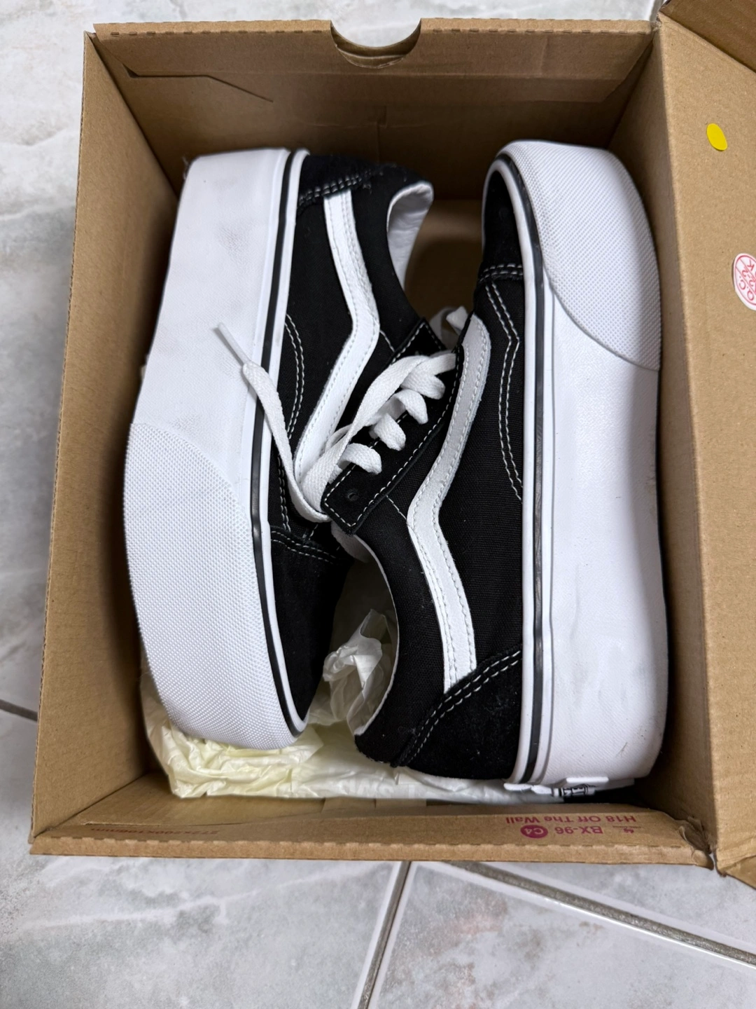 10Selling a pair of Vans Old Skool Platform shoes in classic black and white! They are unworn and completely new. Selling because of sizing issue. It’s a women’s size 5.