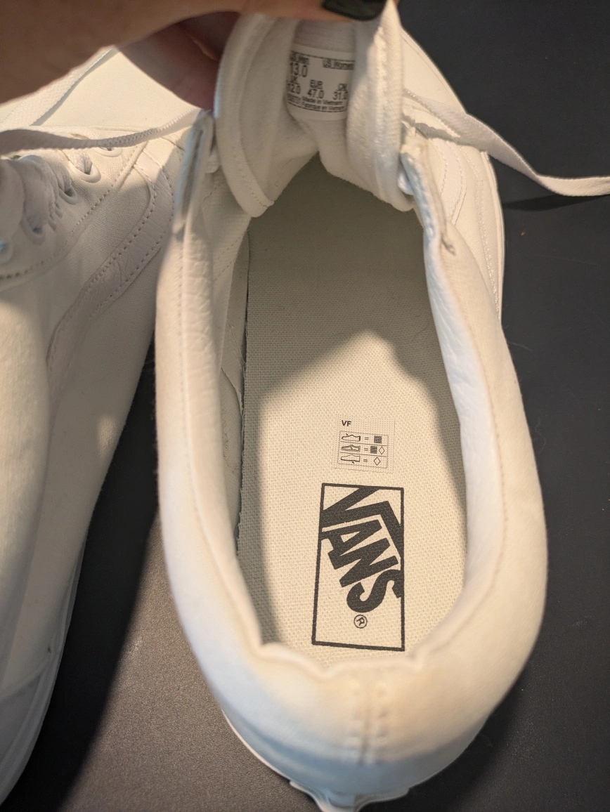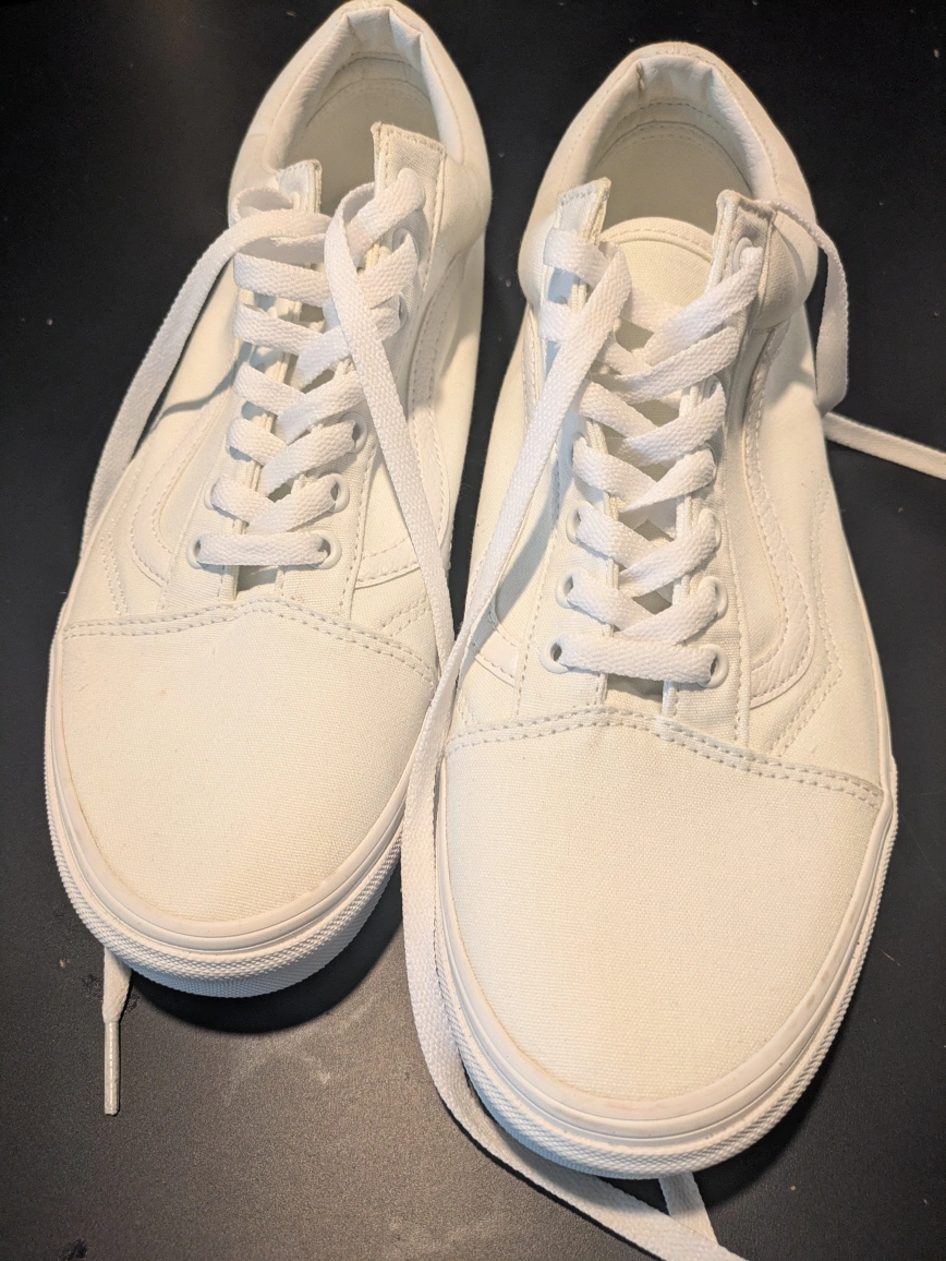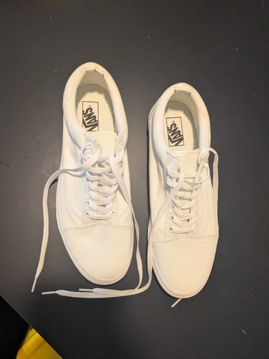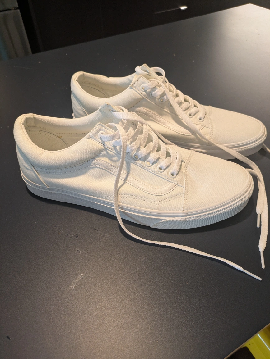 10Selling a pair of classic Vans Old Skool sneakers in white! These are in great condition and ready for a new home. Perfect for everyday wear! size 13