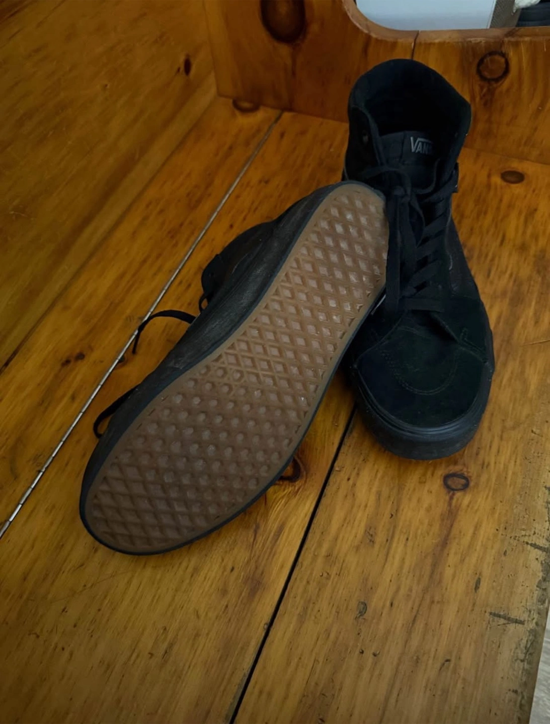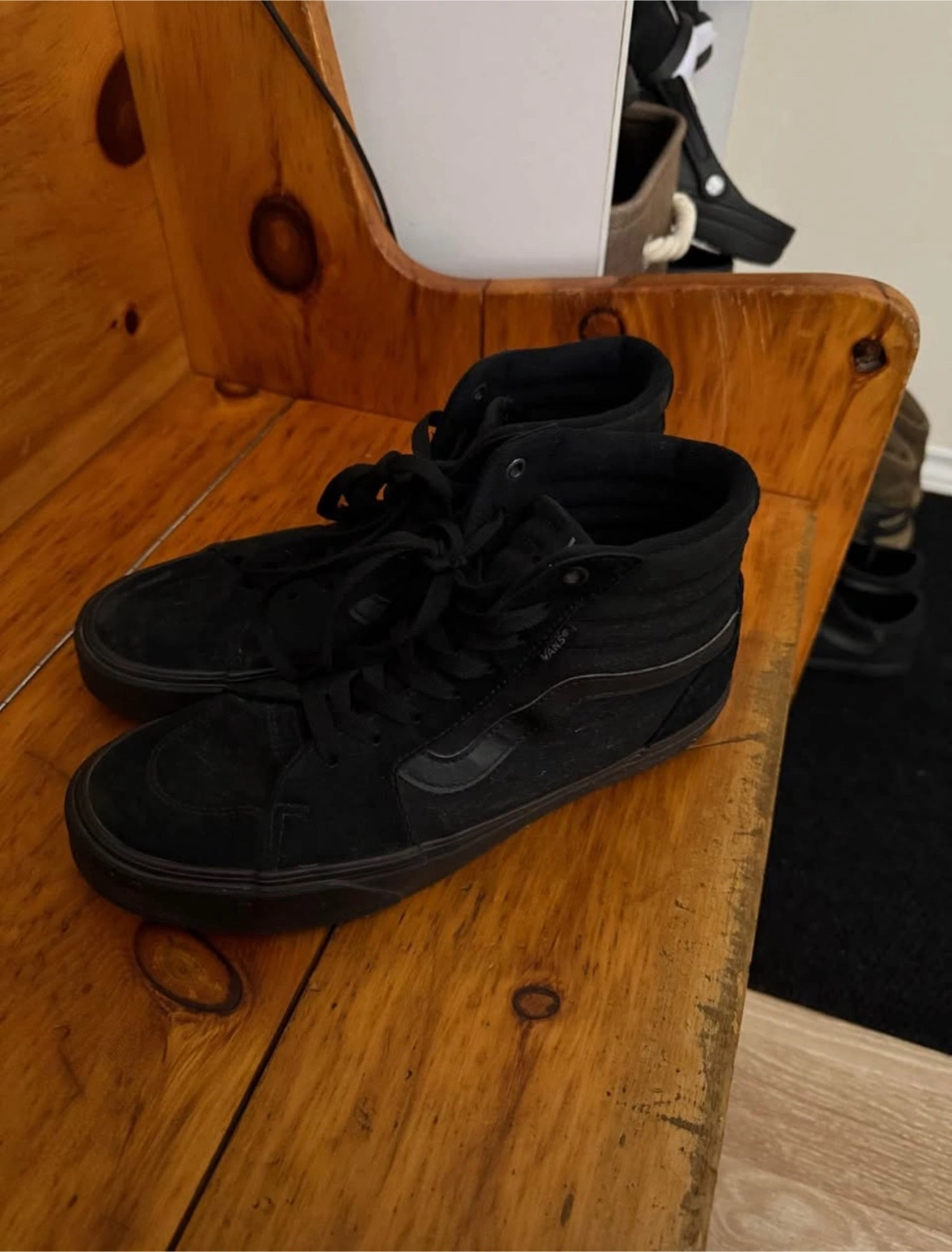 Selling a pair of black Vans Sk8-Hi sneakers in great condition! They're a size 9(US). These classic high-tops are perfect for everyday wear and have a cool, timeless style. Almost new, only worn a few times. Smoke free home.