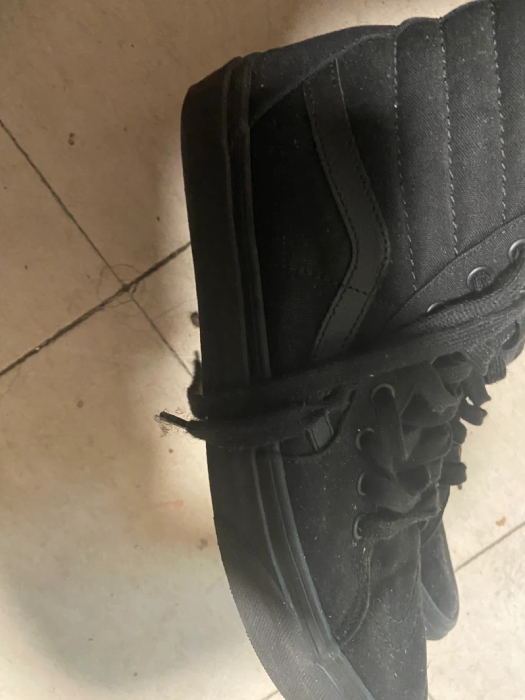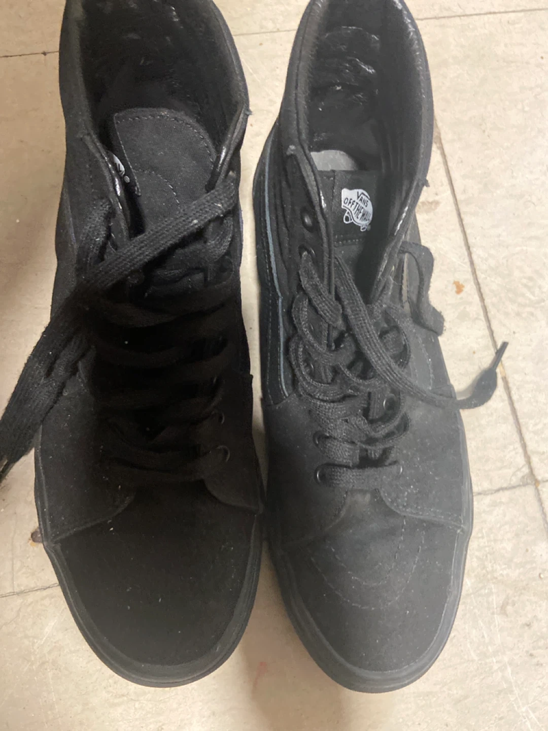 84Selling a pair of black Vans Sk8-Hi high top shoes in size 9.5 They are in used condition. Great for skating,casual or everyday wear!
