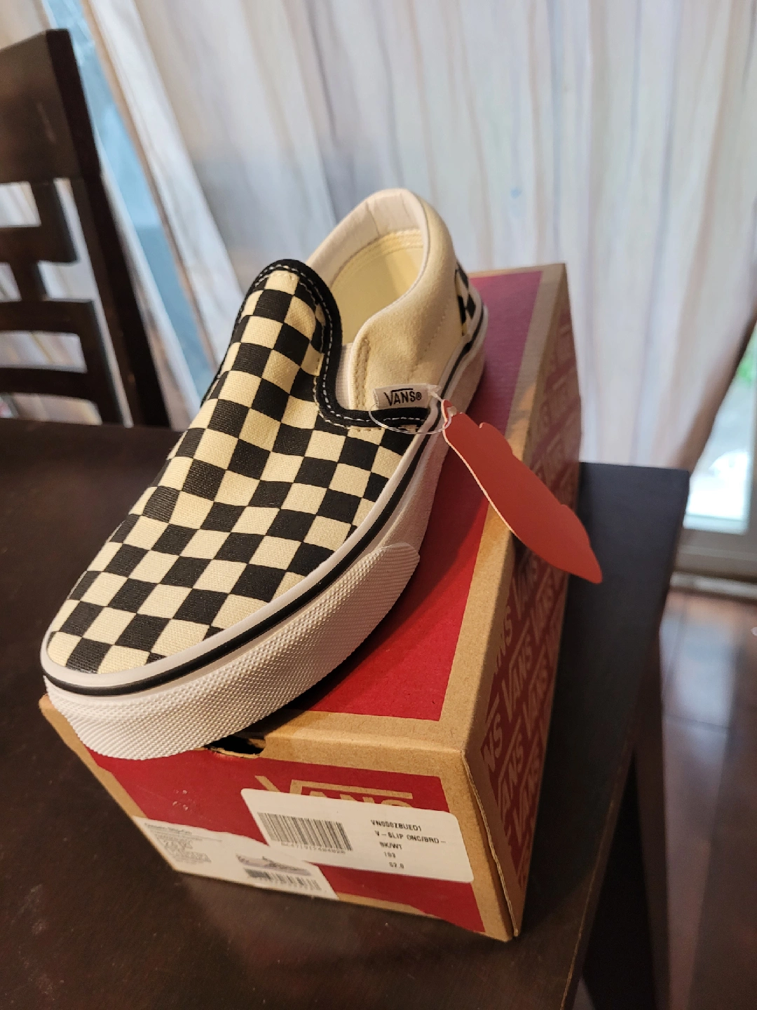 Selling a brand new pair of Vans Slip-On shoes with the classic checkerboard pattern! They come in the original box. Super stylish and ready to go!