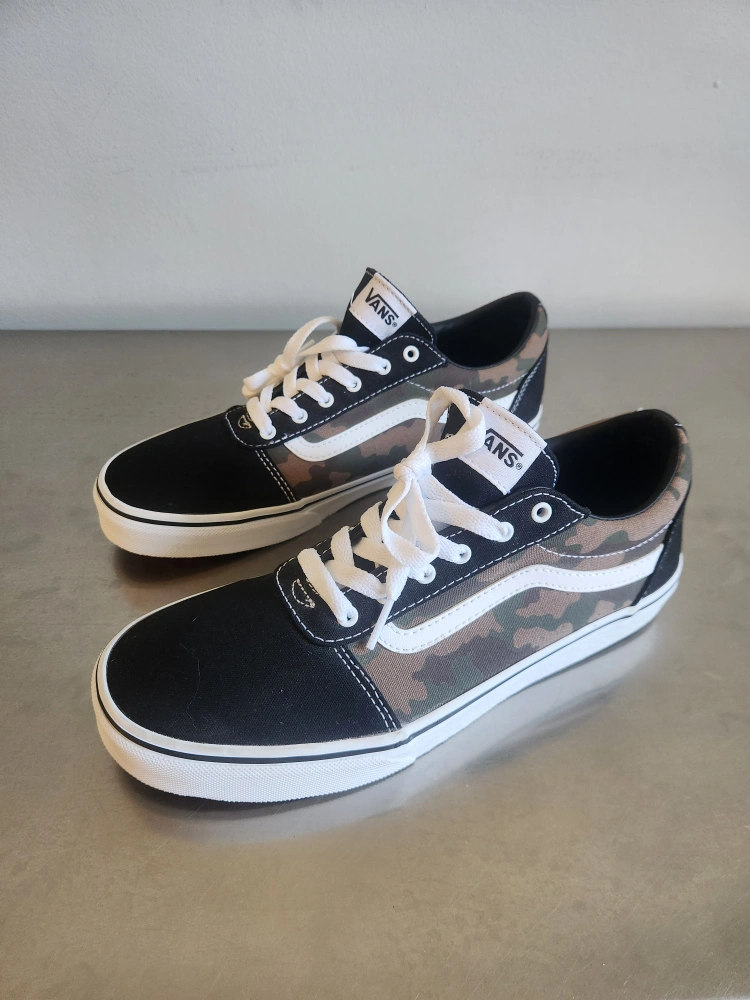 Selling a pair of Vans Ward sneakers in a cool camo and black colourway! They are in great shape and ready for a new home. Classic style and comfortable for everyday wear