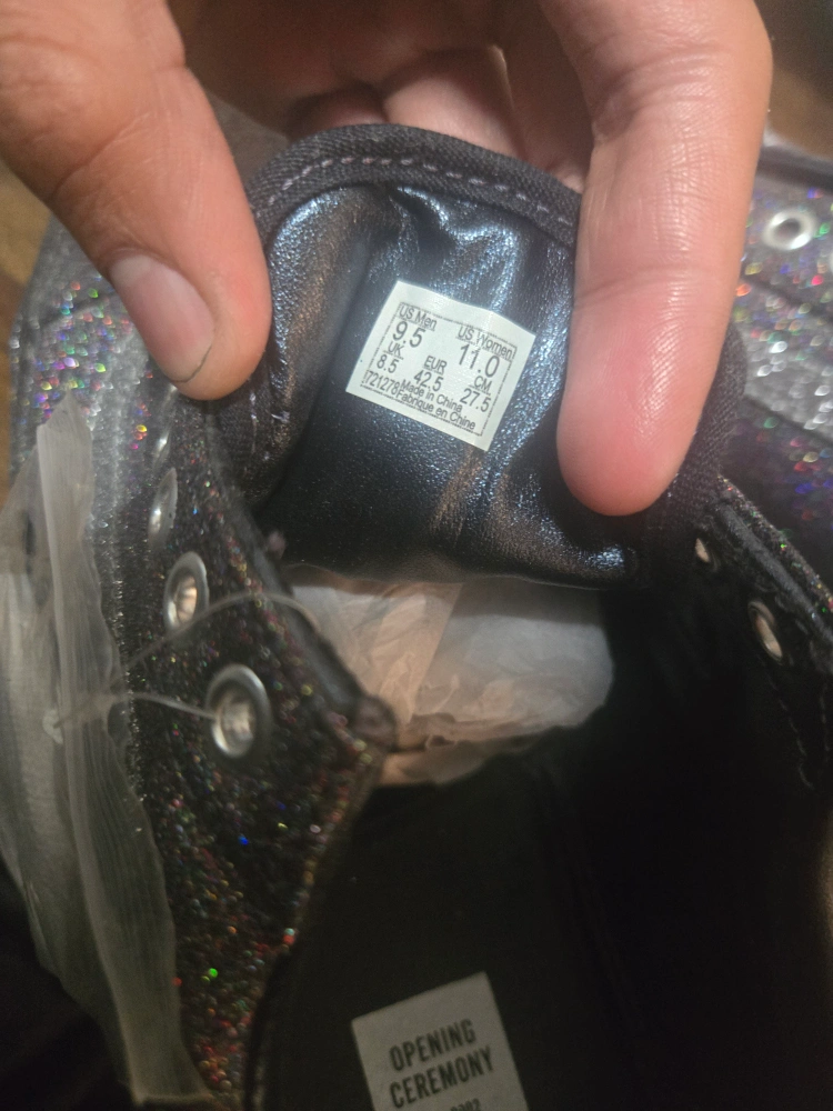 Selling a pair of Vans x Opening Ceremony Glitter Old Skool sneakers in US size 9.5 for men (US 11 for women). These eye-catching sneakers feature a dazzling glitter finish that's sure to turn heads! They come with an extra pair of laces.