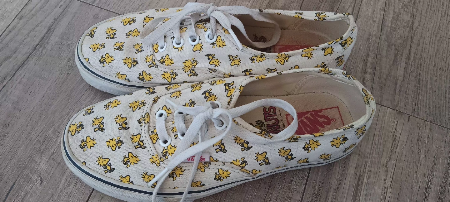 Selling a pair of Vans sneakers with a cute Snoopy print! These are a collaboration with Peanuts. The size is women's US 7. They're in good condition .