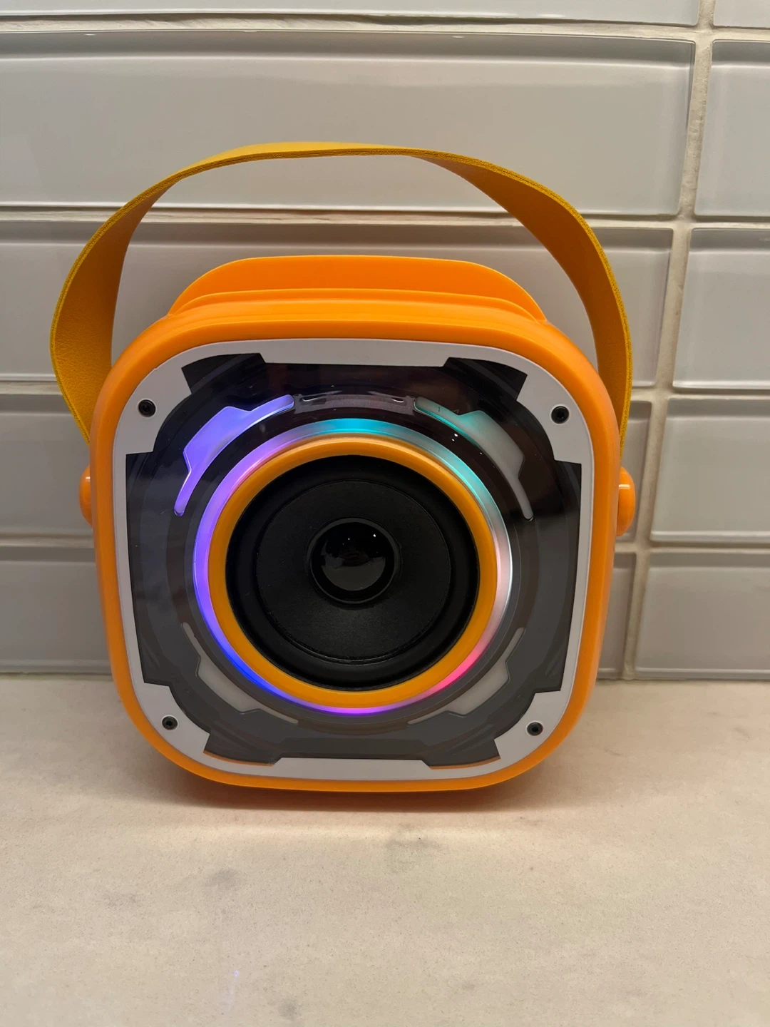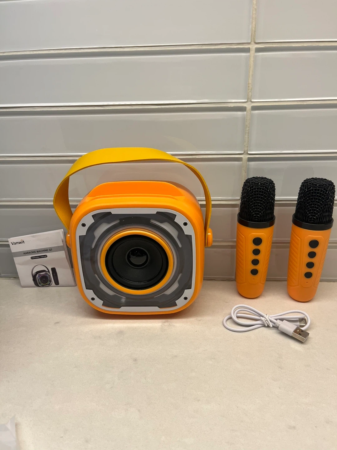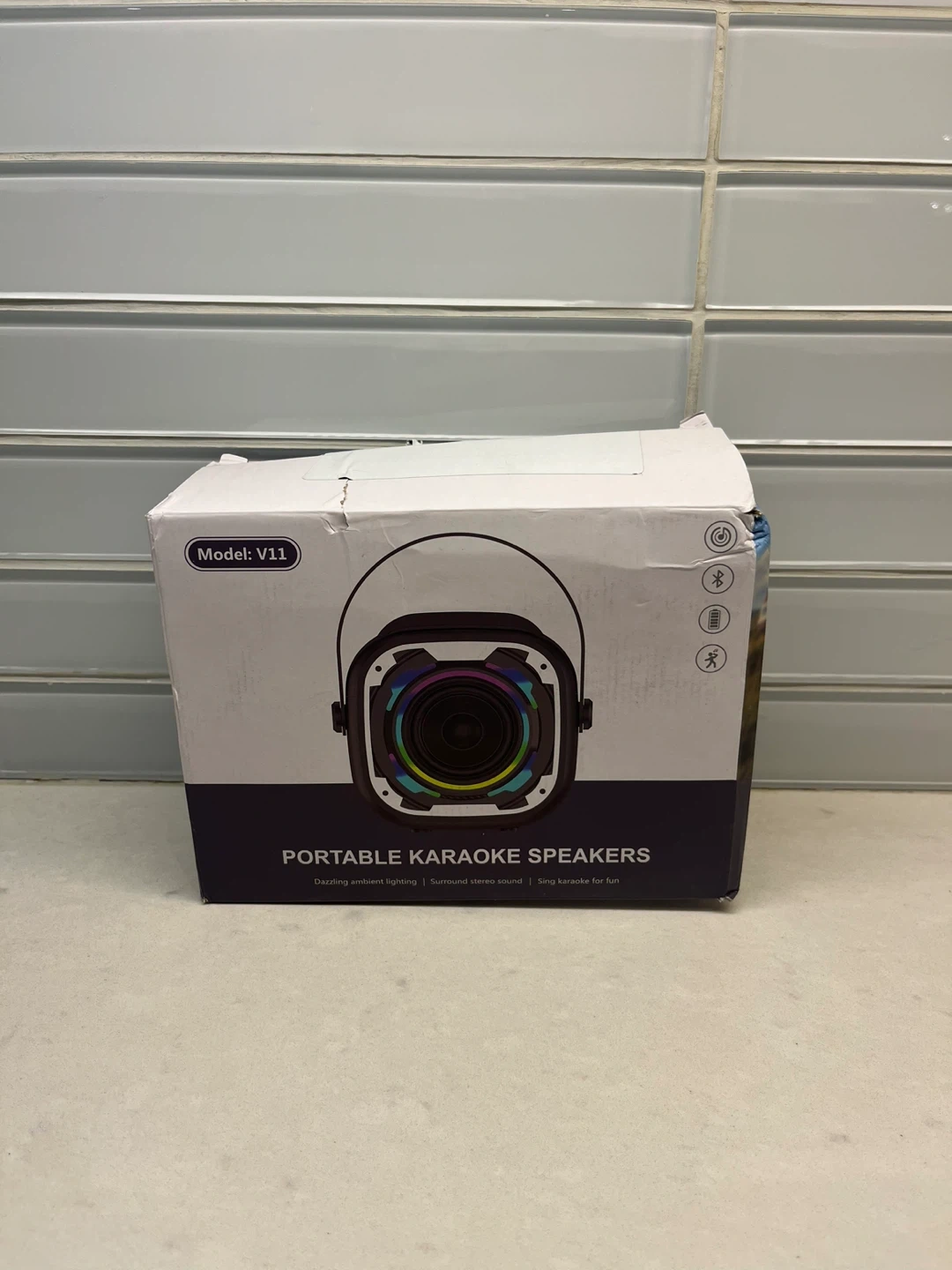 Selling a Vanwitt V11 Portable Karaoke Speaker! It comes with two microphones and a charging cable. The speaker features dazzling ambient lighting and surround stereo sound for a fun karaoke experience. The box is included!