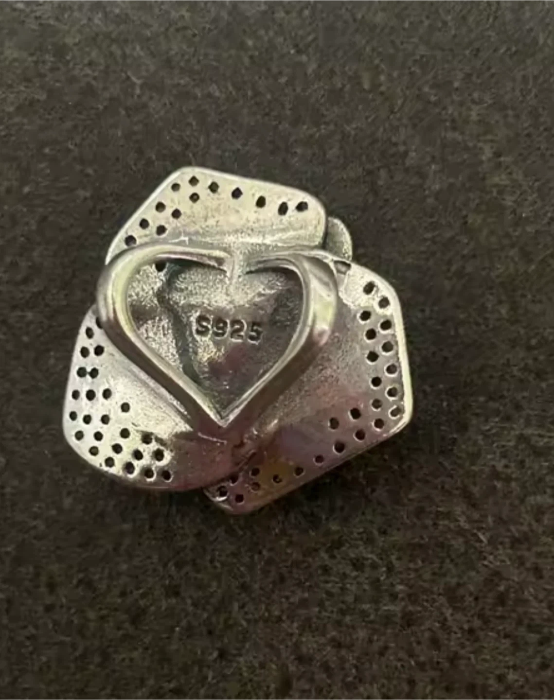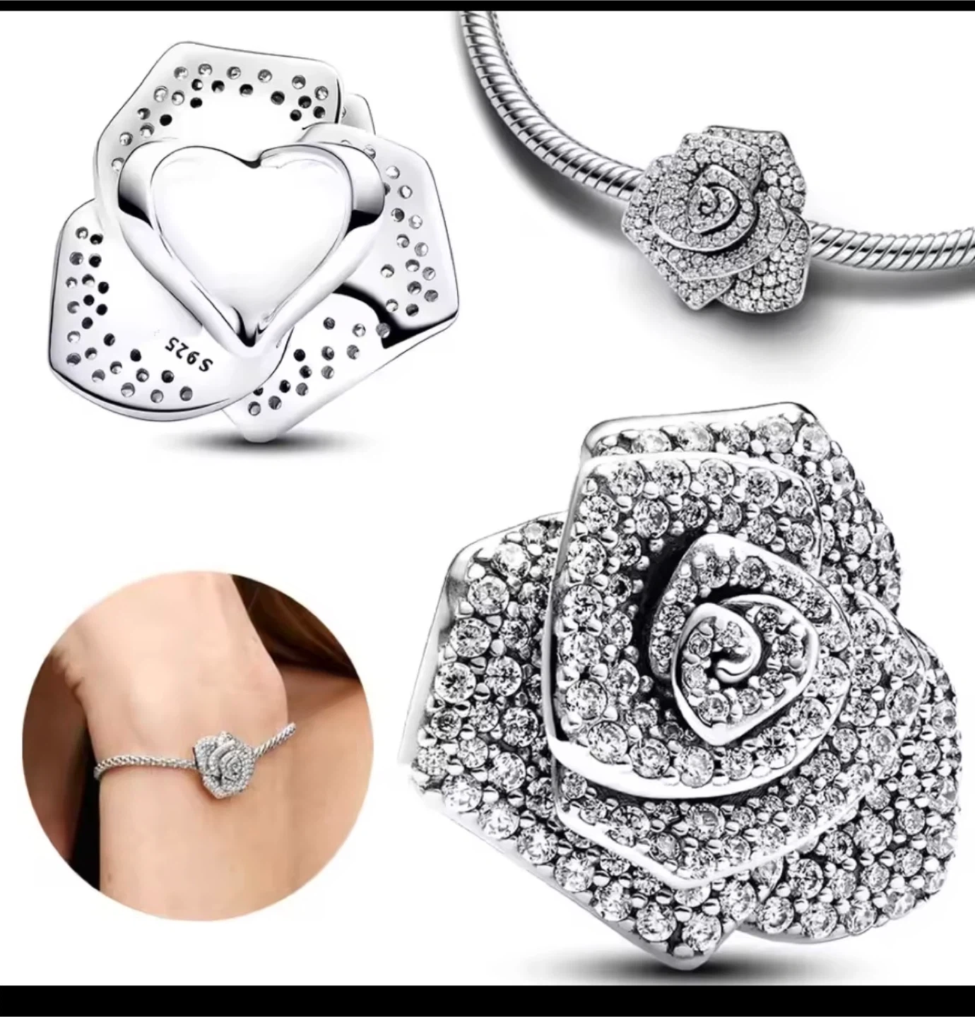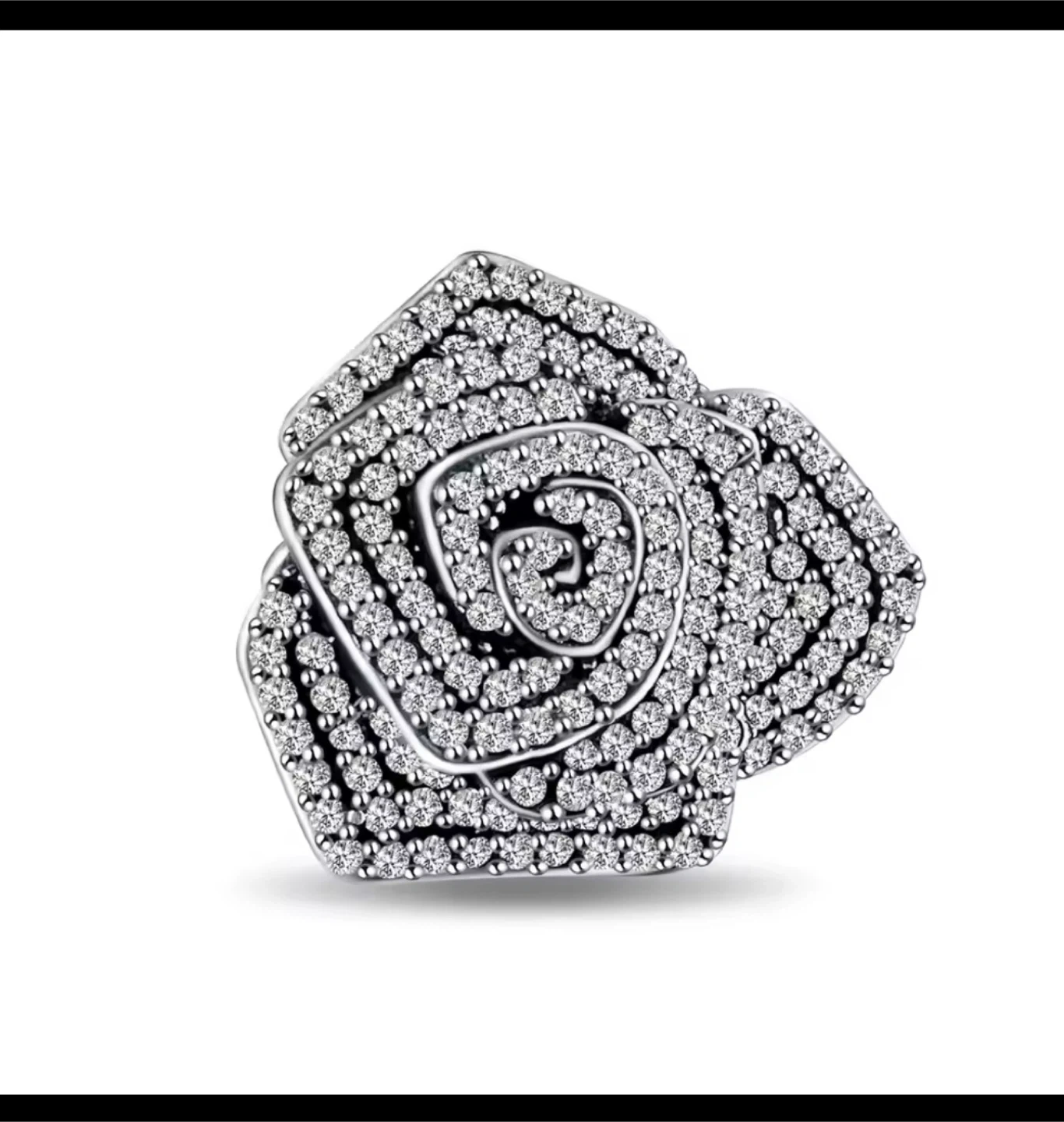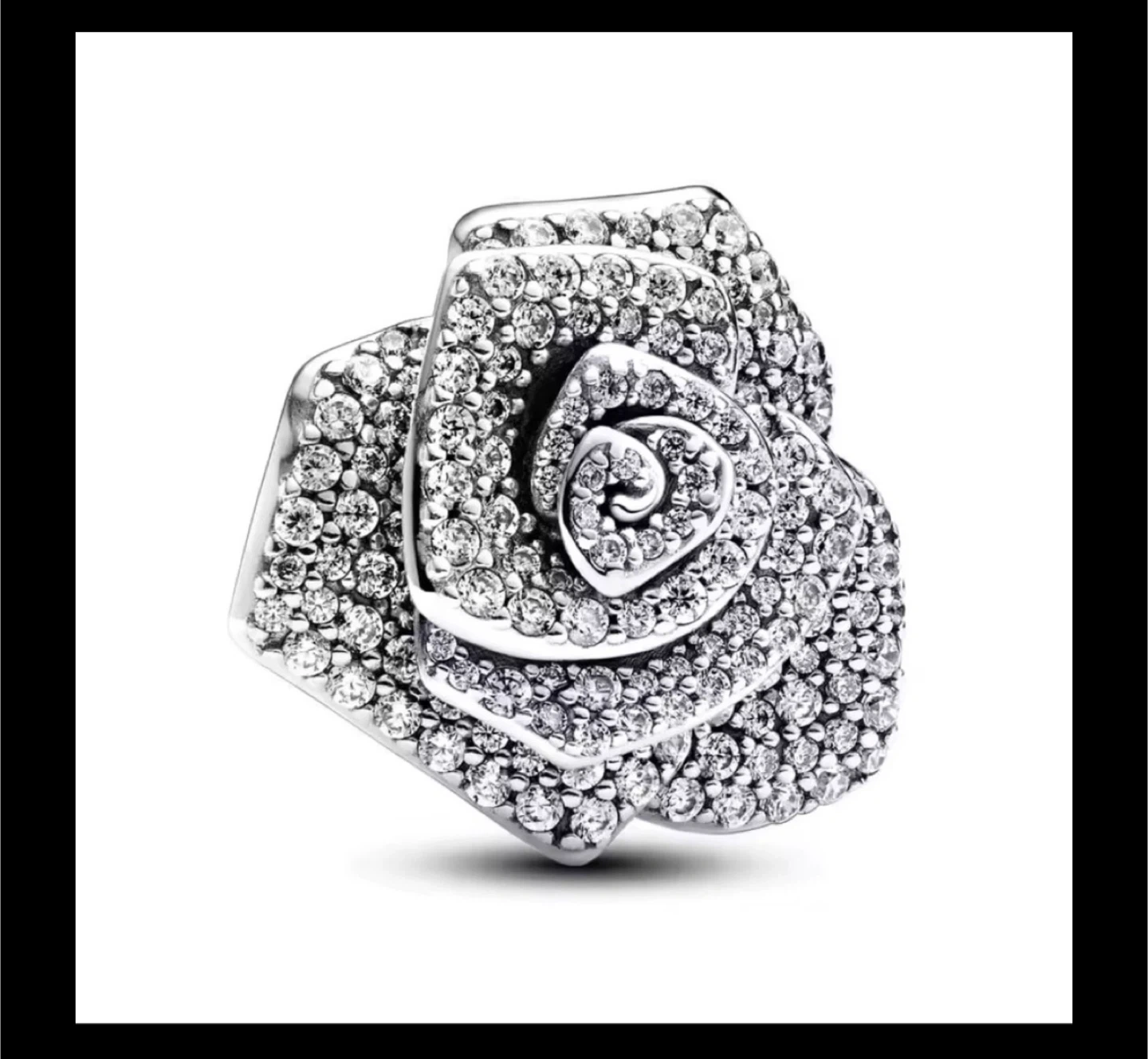 🏆This sterling silver charm bead features a beautiful rose design, encrusted with sparkling stones. It's stamped S925 for authenticity. The charm has a total mass of 1.20g.🏆