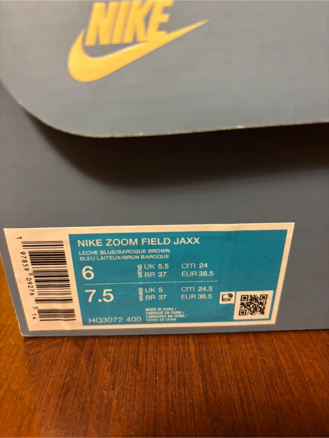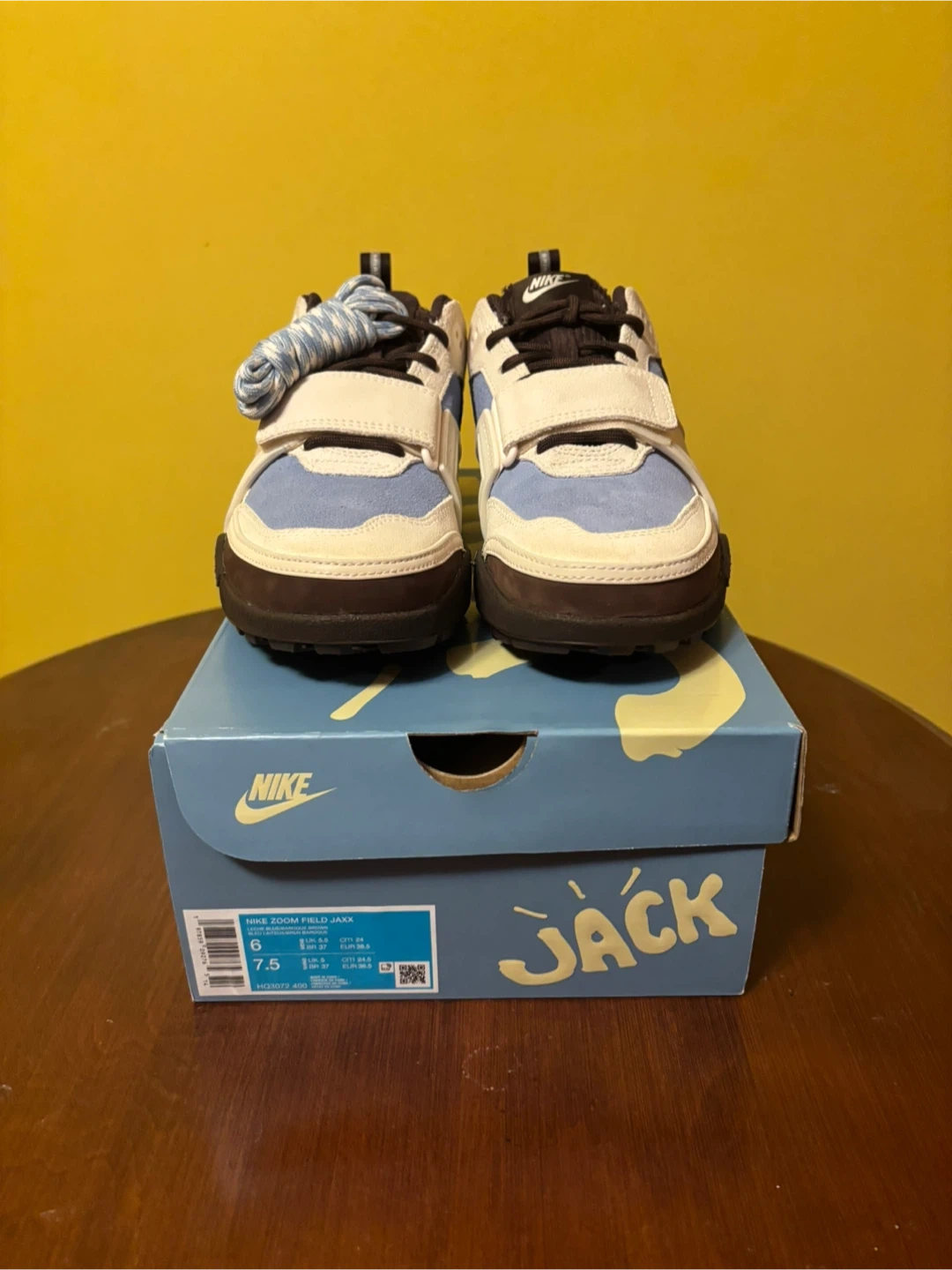 Selling a brand new pair of Nike Zoom Field Jaxx Travis Scott sneakers in size 6 These are in the Leche Blue/Baroque Brown Ivory colour way and come with the original box.