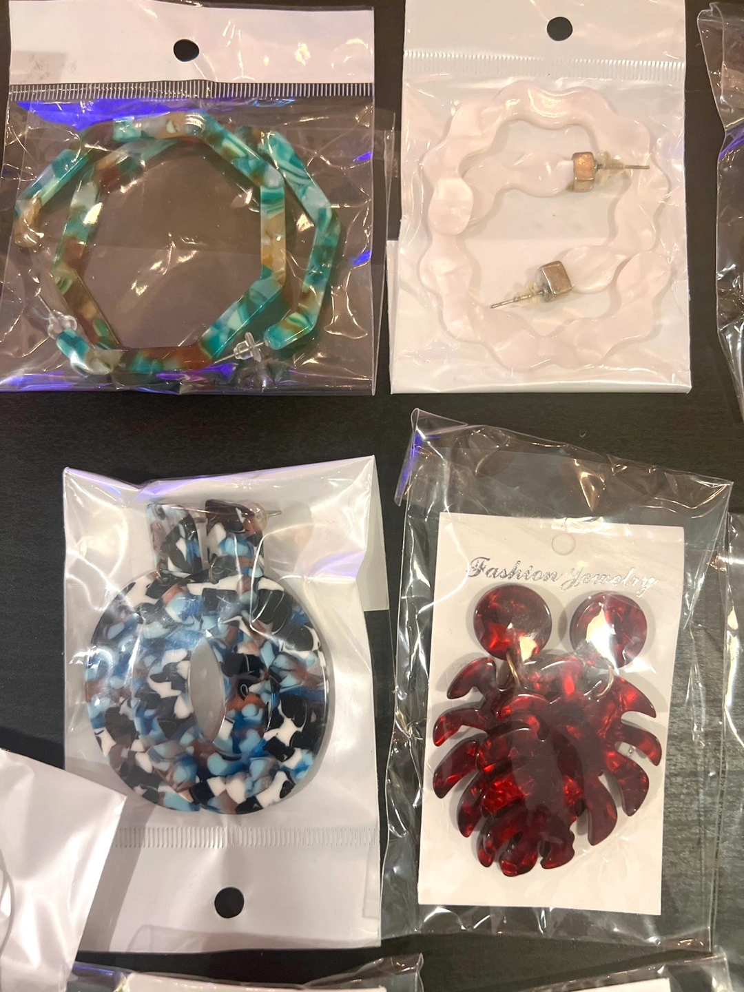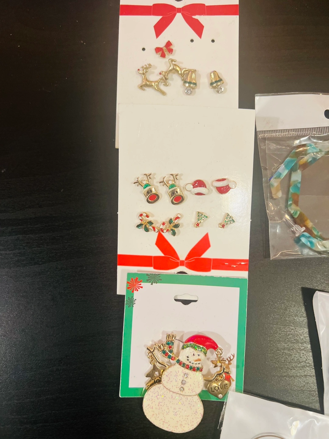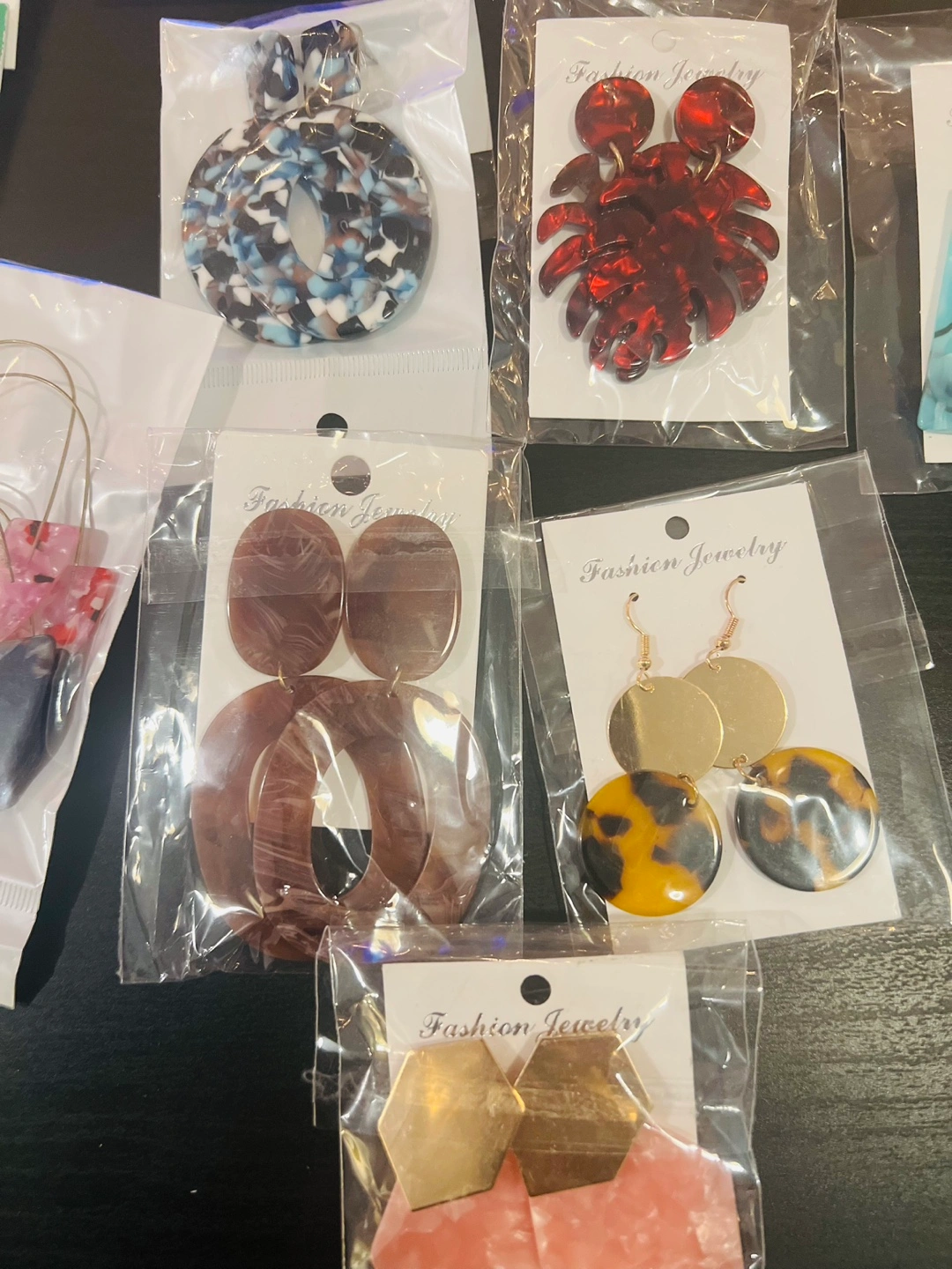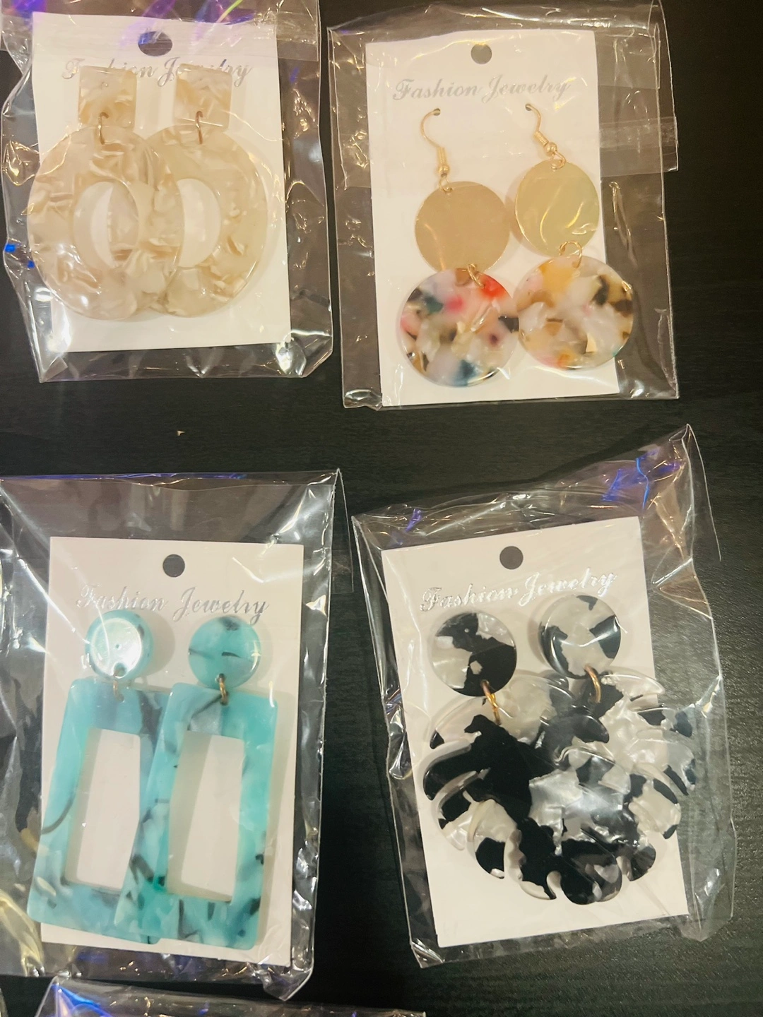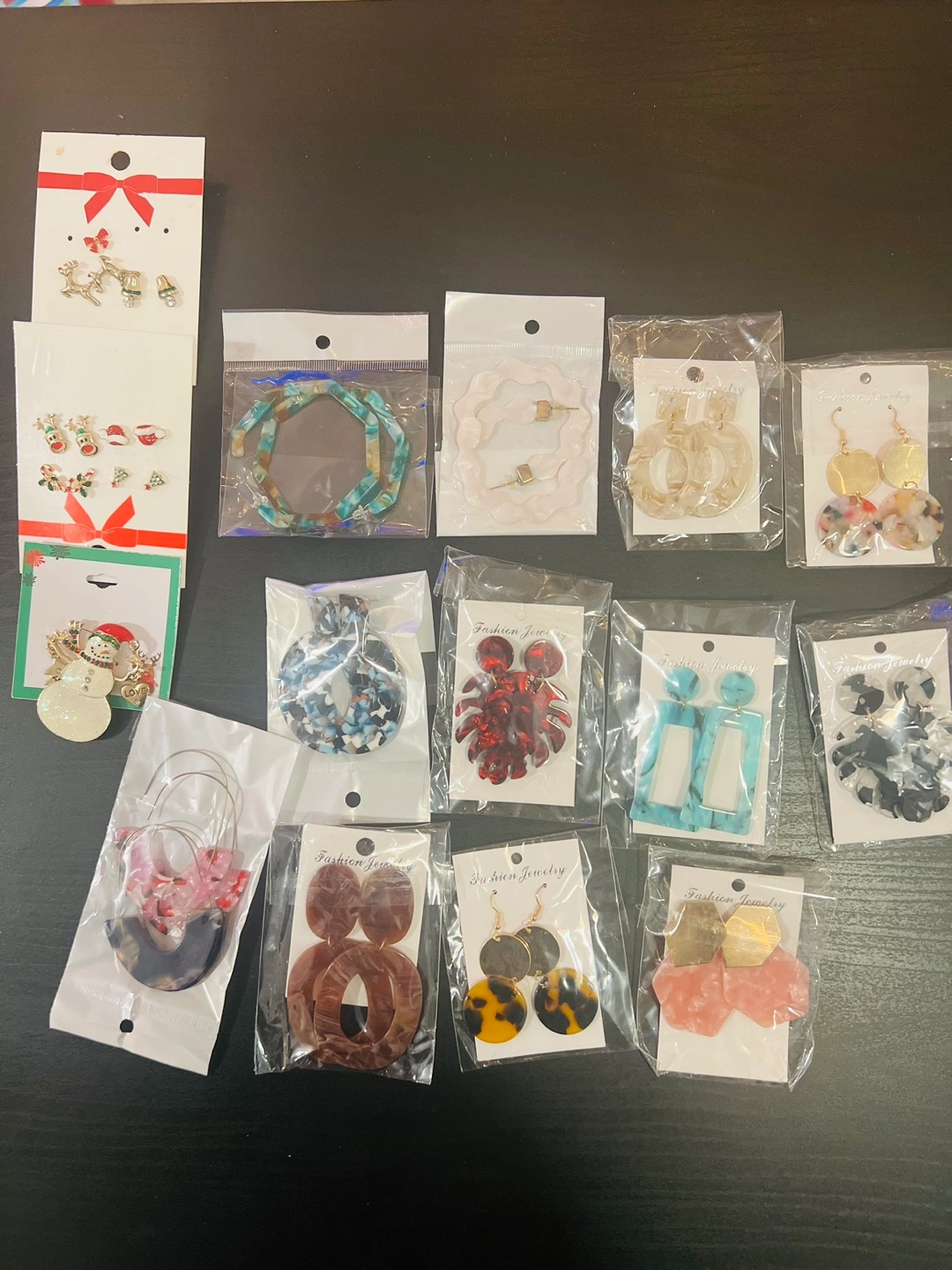 Set of 17 pairs of earrings, various styles and colours. All earrings are new, never worn. $.50 c to $1 dollar each