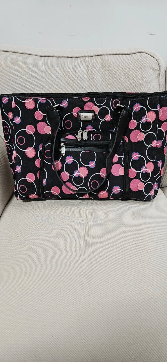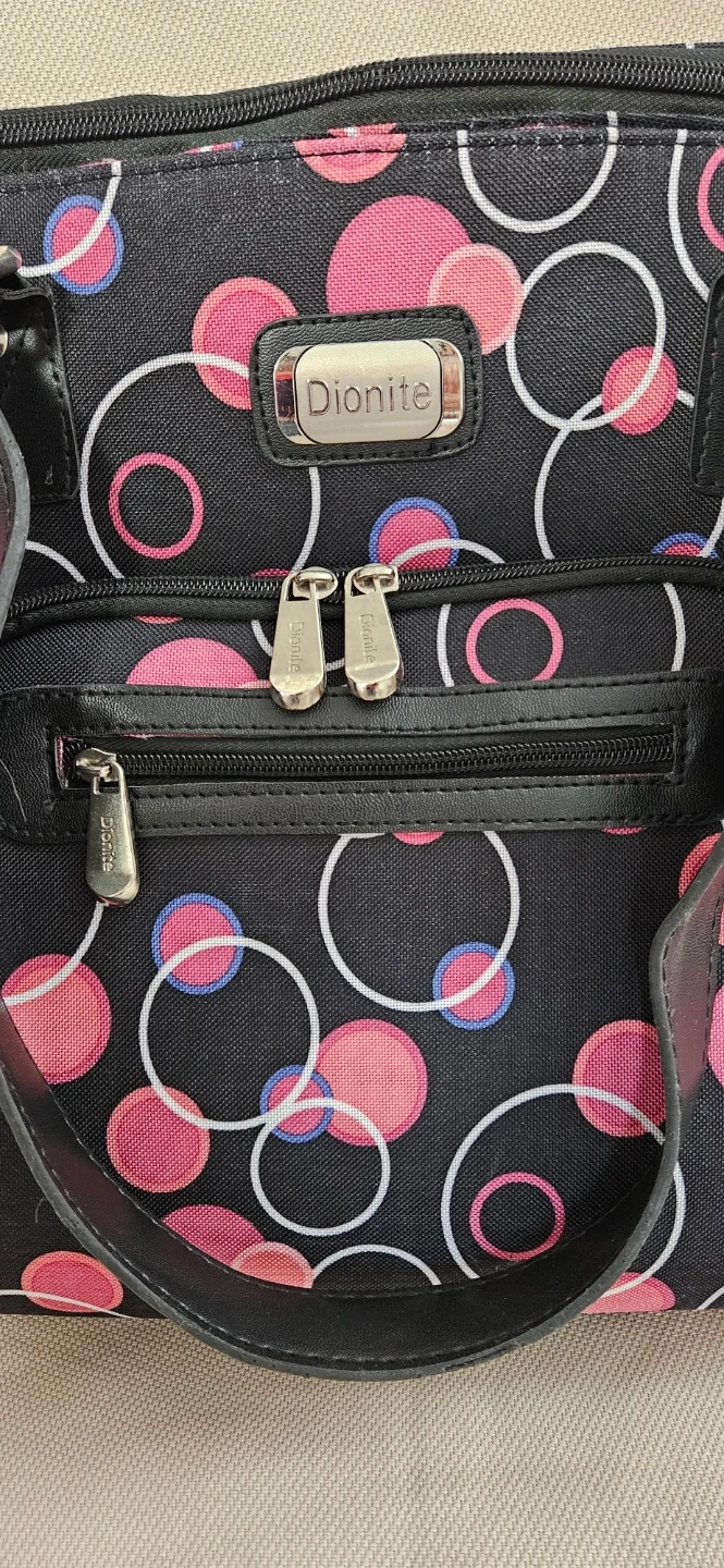 Buy & SellDionite Tote BagDionite Tote Bag$20Dionite tote bag with a fun pink and blue circle pattern. It has a black faux leather trim and handles. Multiple zippered pockets for organization.ConditionNewWHERE TO MEETCheck LocationView MapSELLERverifiedMojganFinch77350 reviews1 chats·0 favorites·14 viewsSEND CHAT TO SELLERHi Mojgan! I’m interested in your listing.Hi Mojgan! I’m interested in your listing.Get the Karrot app to chatSign In to chat