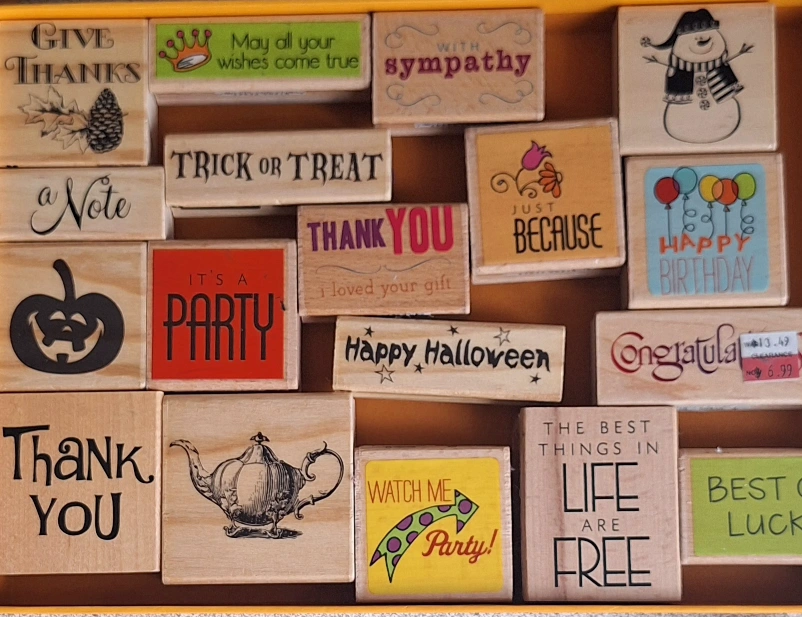 68Selling a collection of craft stamps! There's a mix of wooden and clear rubber stamps.