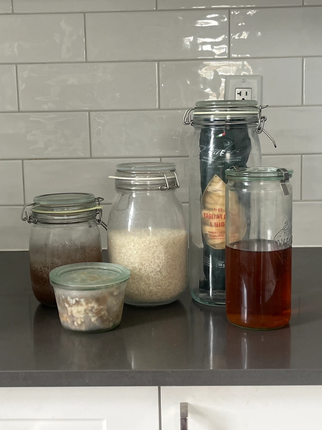258Selling a collection of glass kitchen storage jars. (2 Weck Jars and 3 from IKEA) Great for organizing your pantry or storing leftovers. There are various sizes and styles available, perfect for different storage needs! ✅ Rest assured, I’ll wash them before handing them over to you.