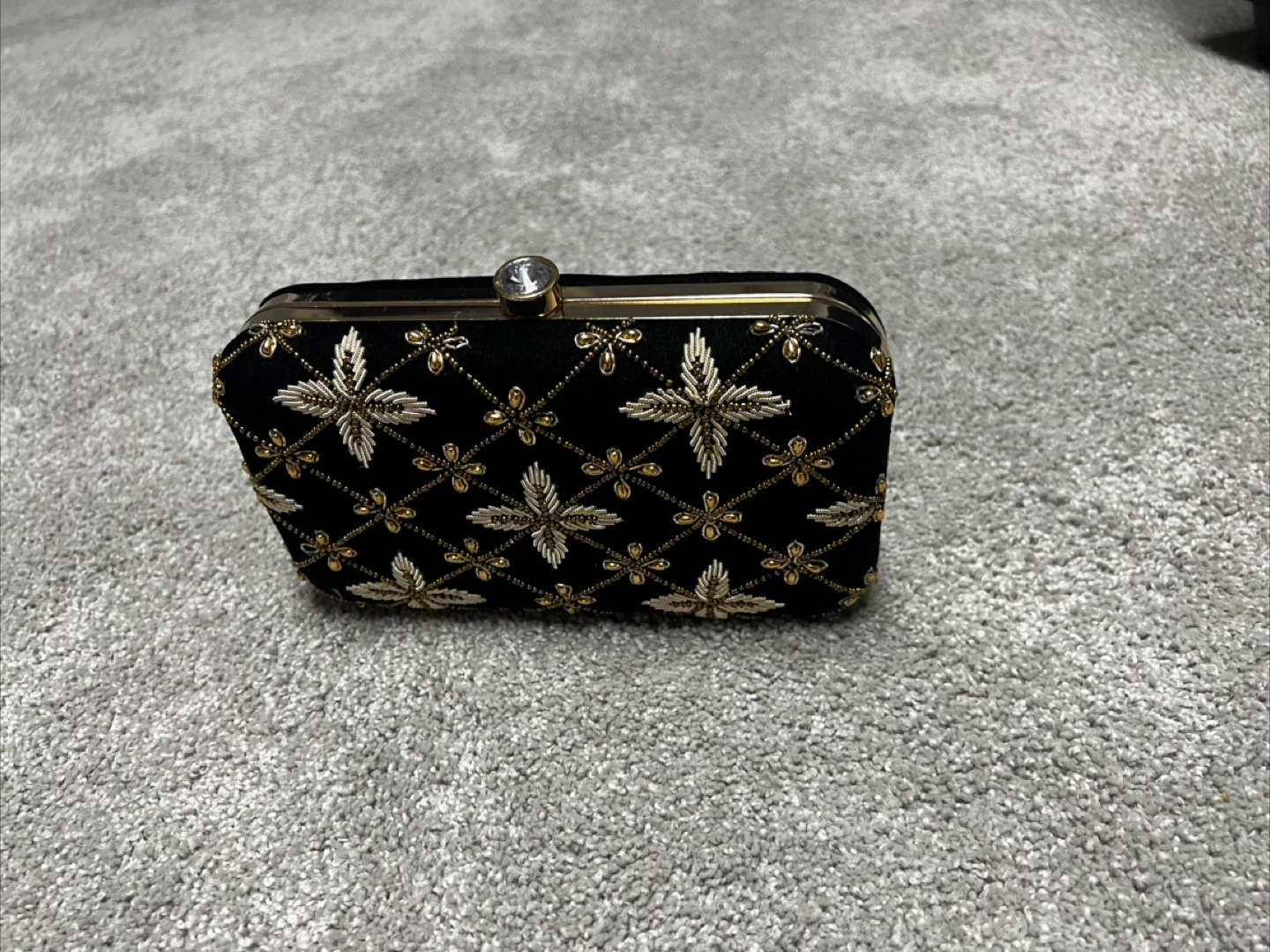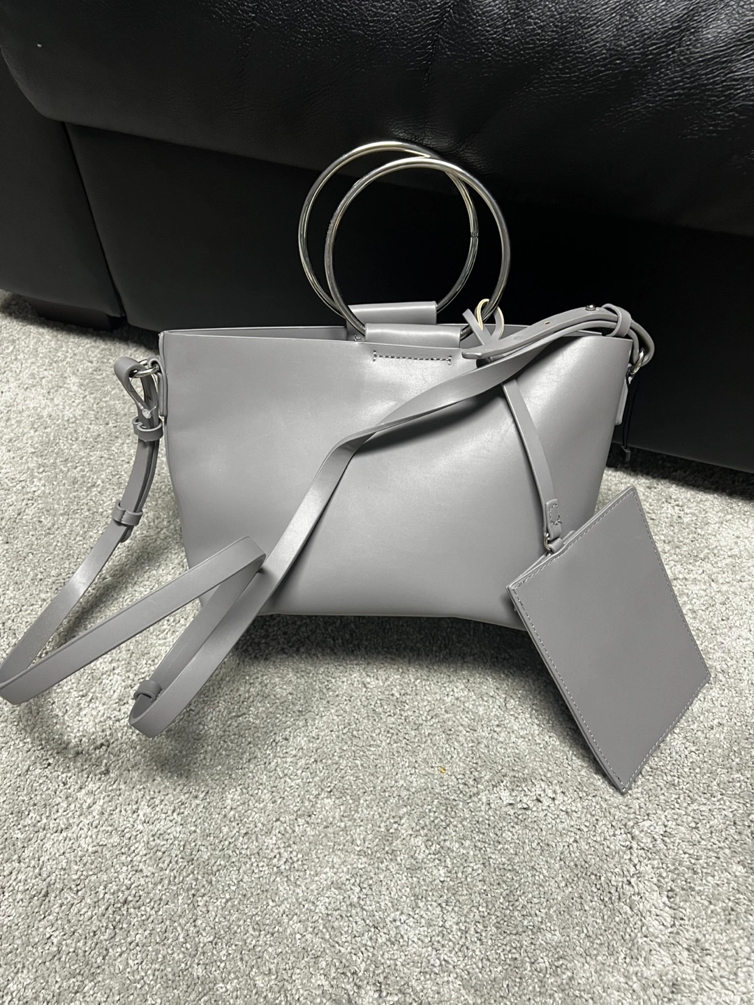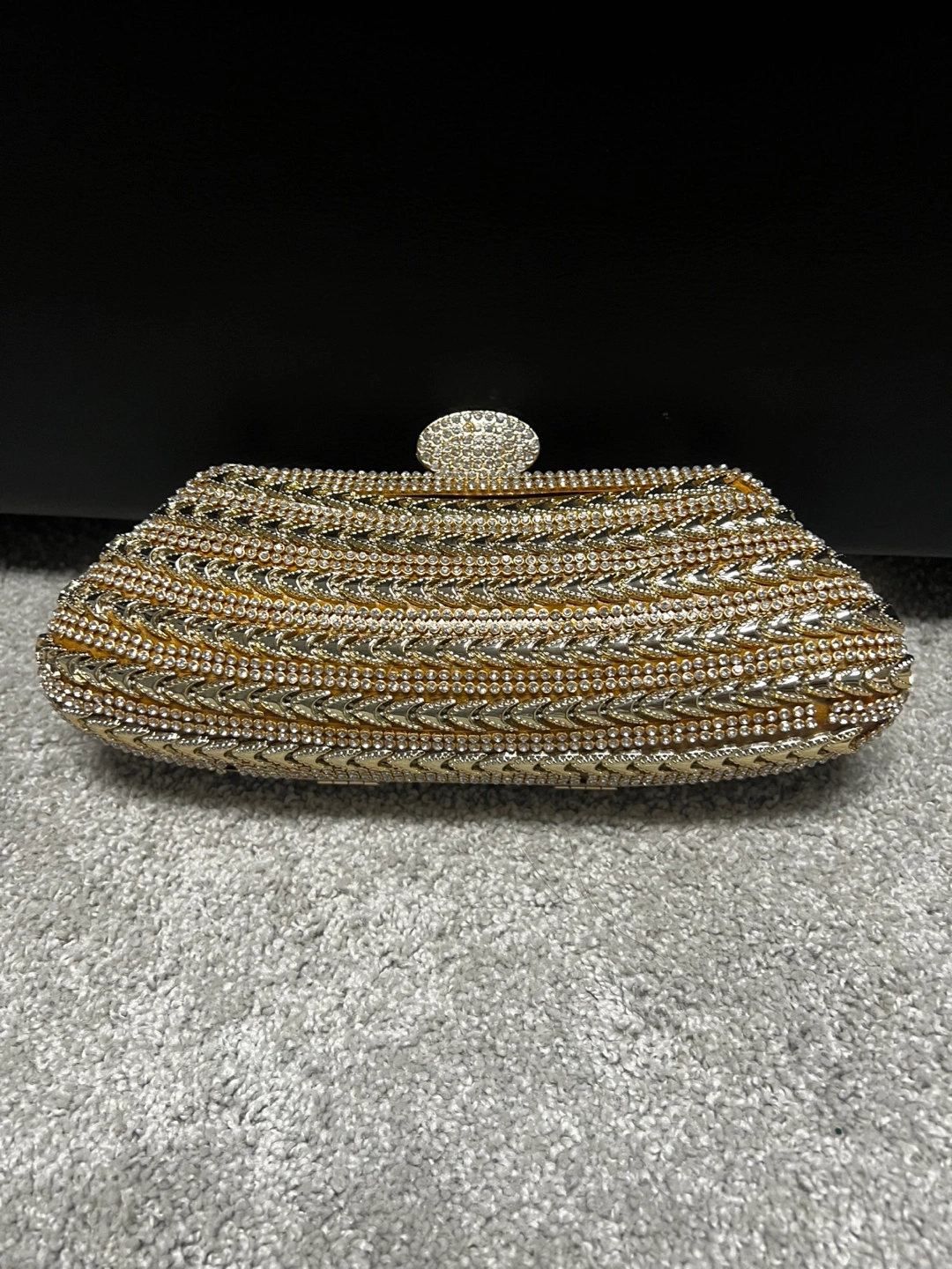 Selling a collection of women's handbags in various styles and colours! There's a brown handbag, a black chain bag, a grey handbag with a ring handle, a black and gold clutch, and a black crocodile-patterned handbag. All in good condition and ready for a new home!