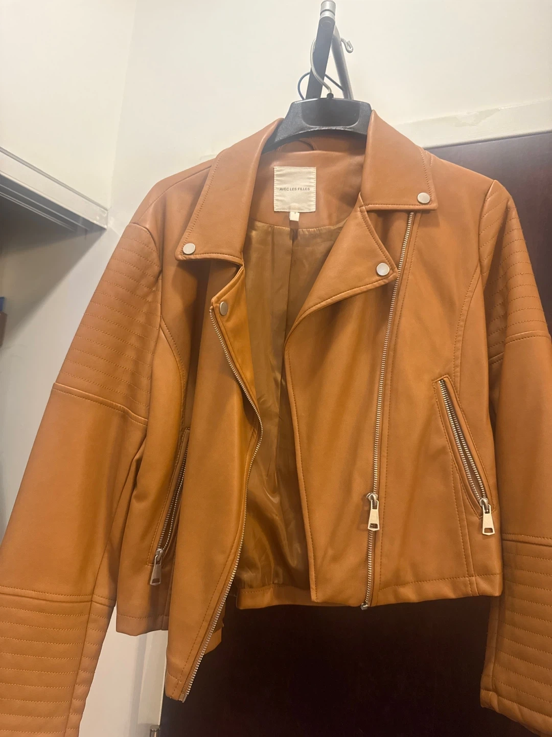 10Selling a variety of women's jackets. There is a Levi's denim jacket, a Styler suede jacket, a brown faux leather jacket, and a black faux leather jacket. All are in good condition and ready for a new home! All size Large Black Faux Size 8