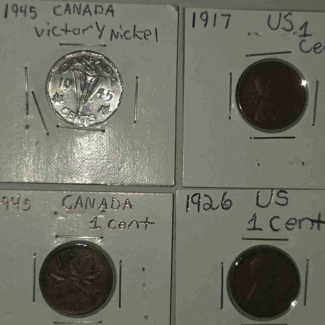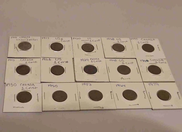 60I am looking to sell Approximately 200 U.S/Canada 1 Cent coins from years 1915-1949. Another 200 from year 1950-1970. If old coinage interests you just let me know! Also have one 1945 Canada Victory Nickel ' Uncirculated'. Make me an offer!