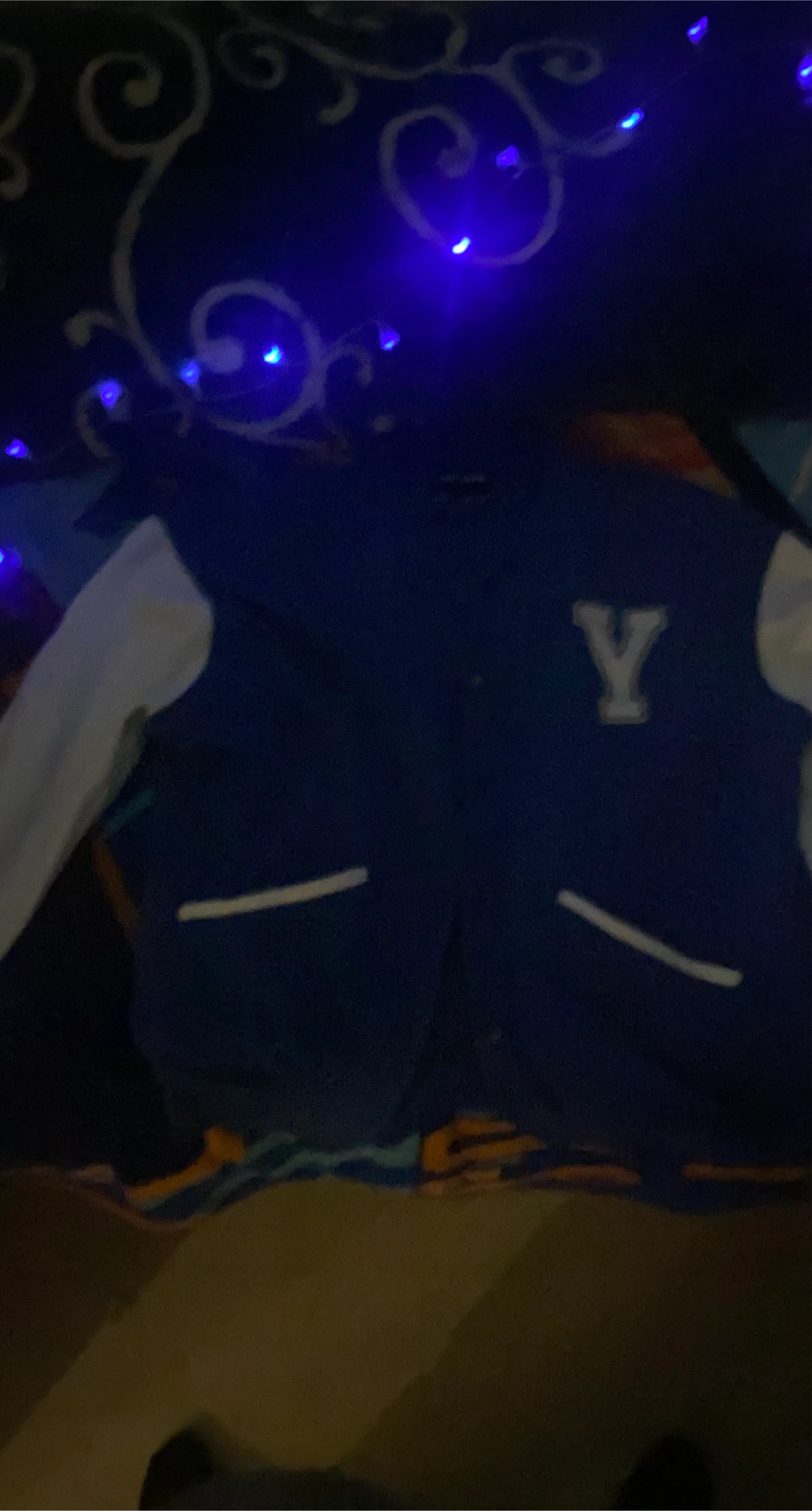Selling a varsity jacket in blue and white. It features a letter 'Y' on the front. Perfect for a casual, sporty look!