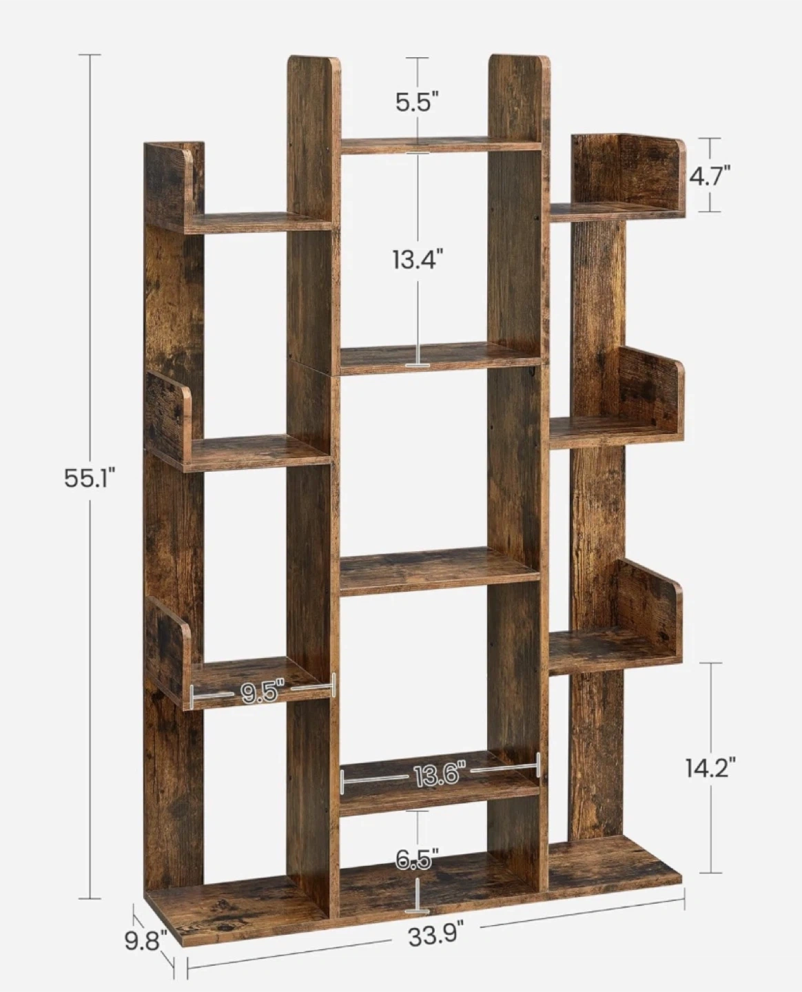 108Pick up: Brock Road and Rex Heath Drive in Pickering Upgrade your space with this unique tree-shaped bookcase! With 13 storage shelves, itβs perfect for displaying books, plants, photos, or dΓ©cor. Stylish rustic brown finish blends seamlessly with modern or cozy interiors. β Tree-inspired design β eye-catching & functional β 13 shelves for books & display items β Space-saving: 33.9βL x 9.8βW x 55.1βH β Sturdy & durable build π Perfect for living rooms, bedrooms, or offices. β¨ Add character to your home today! β¨