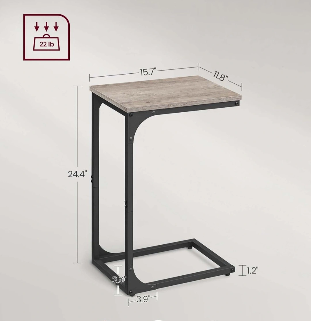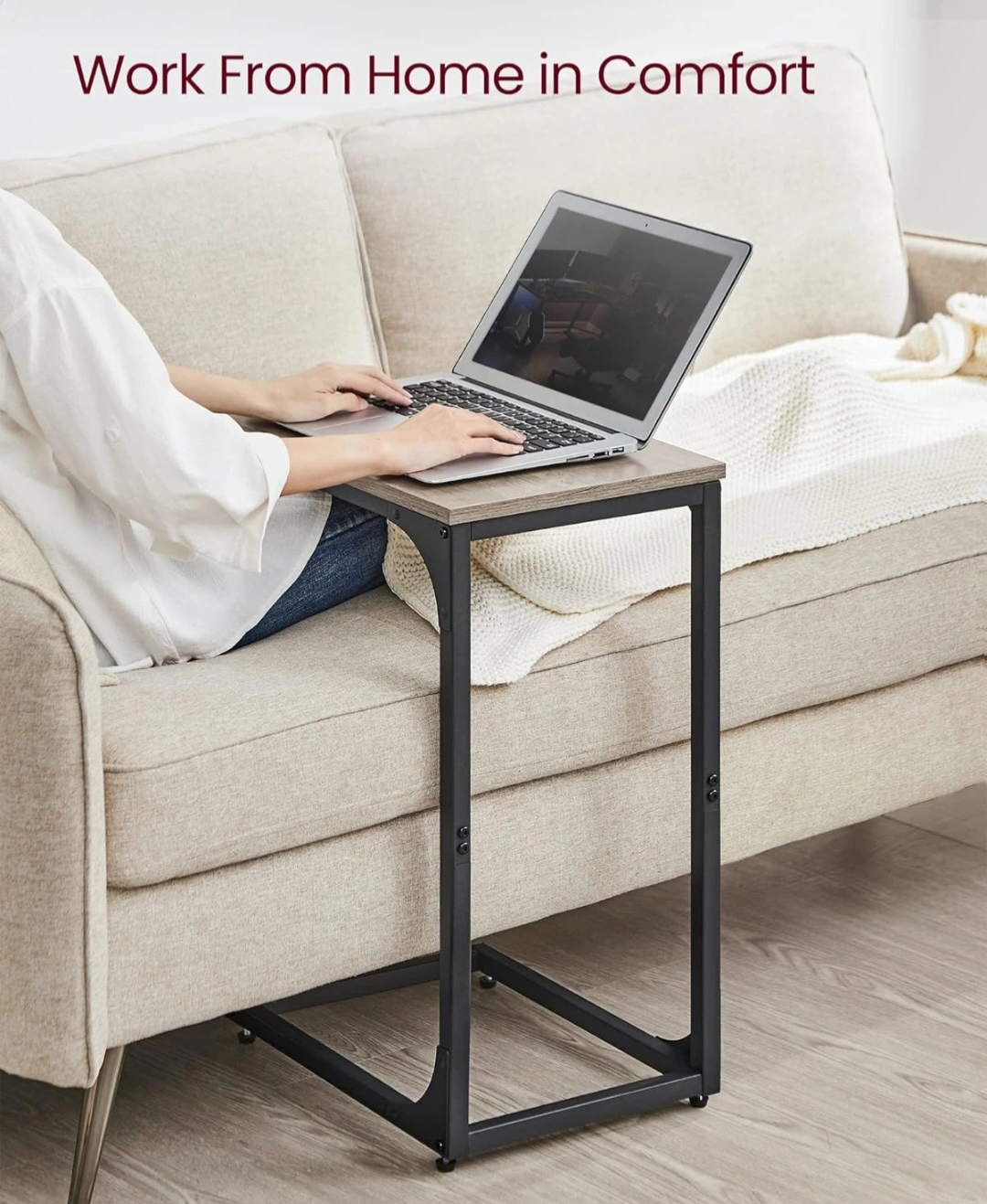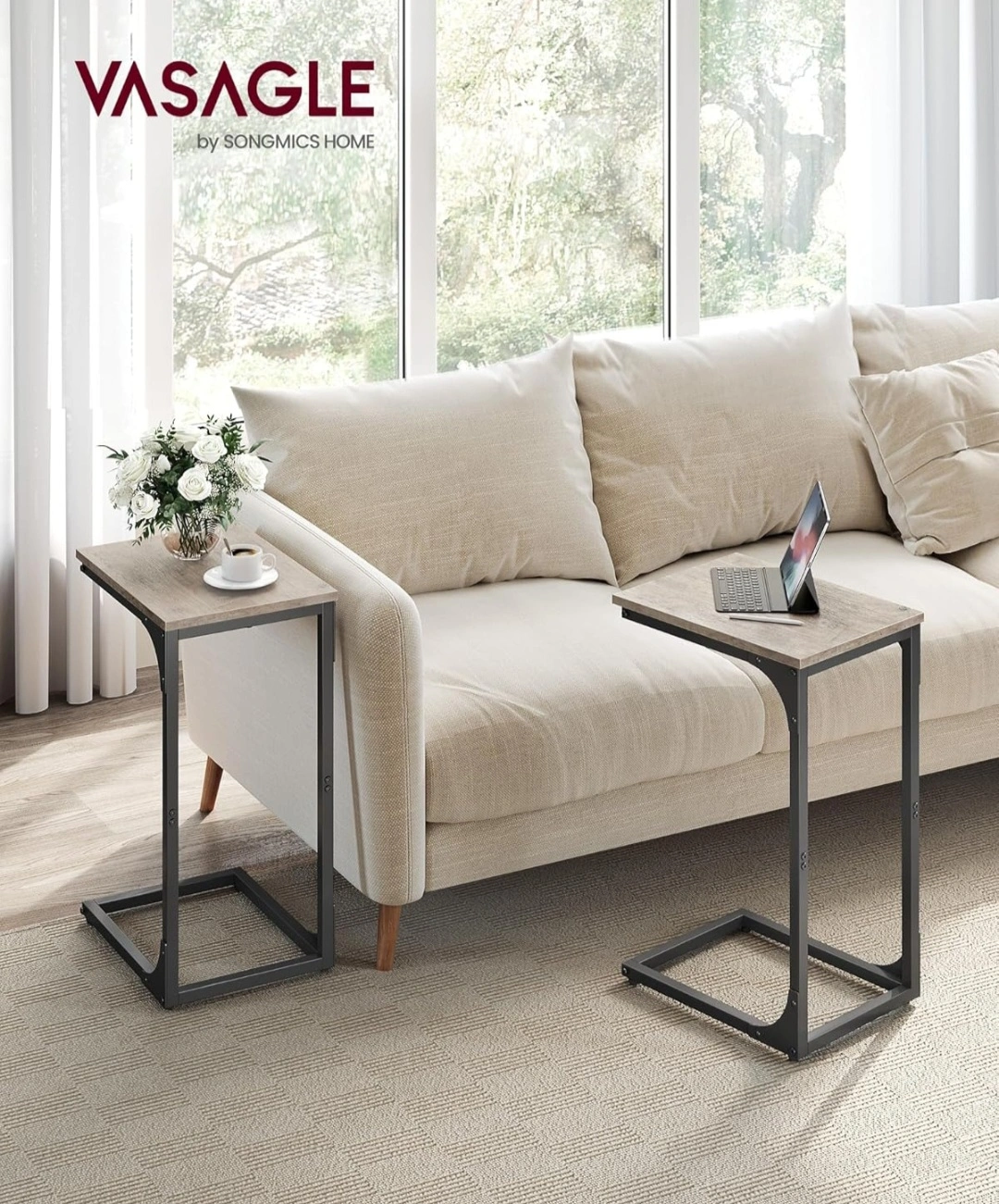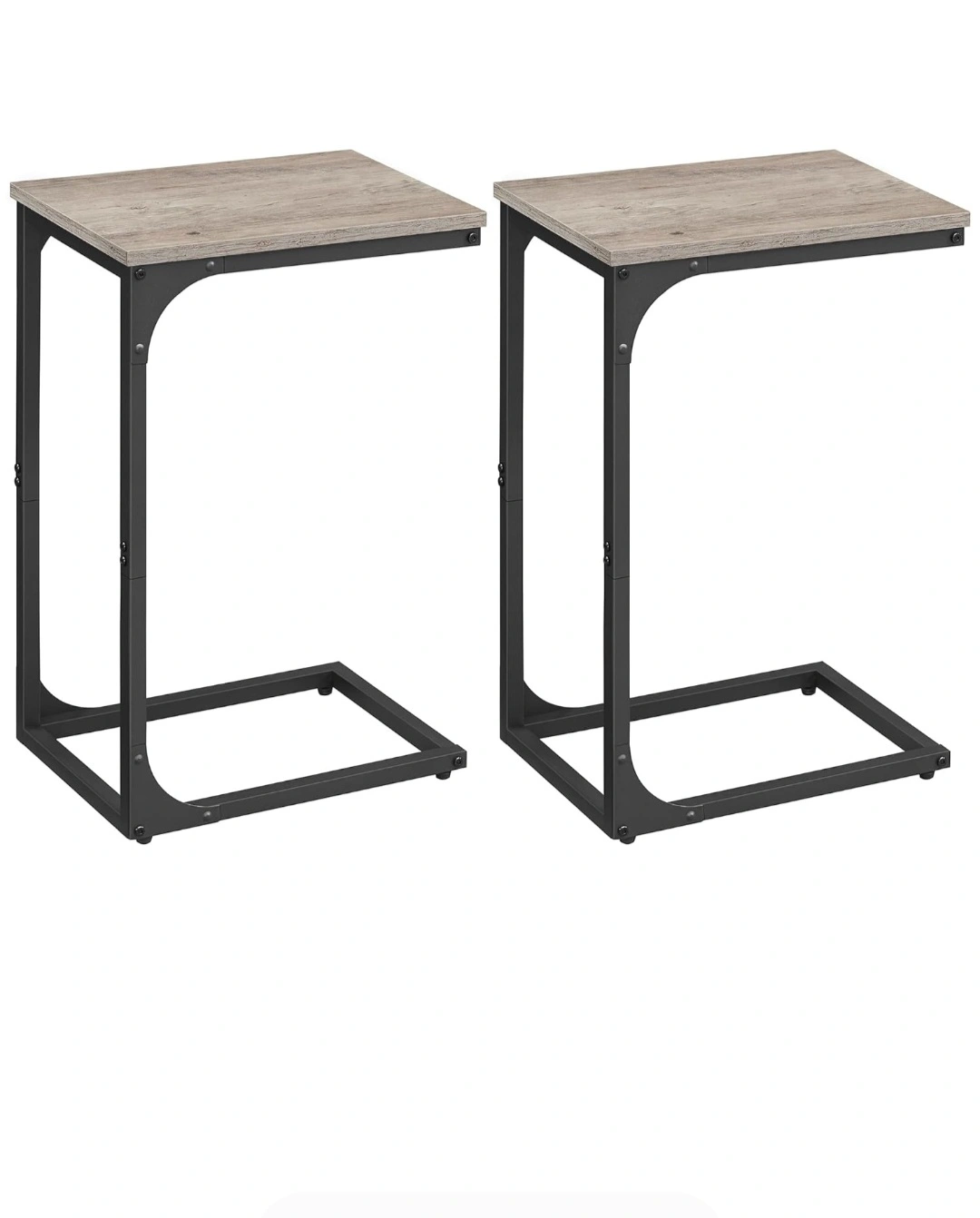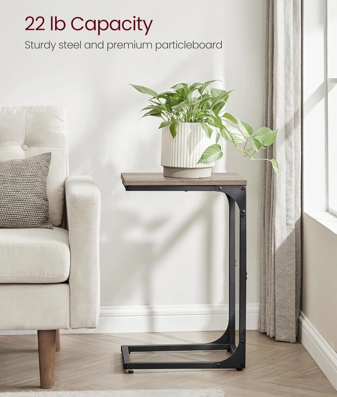 89VASAGLE Set of 2 C-Shaped Side Table, Bedside Table, Sofa Side Table, Coffee Table, with Metal Frame, Industrial, for Living Room, Bedroom, Heather Greige and Ink Black LET354B02