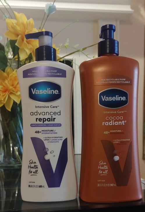 I'm selling two bottles of Vaseline lotion! One is the Intensive Care Advanced Repair, lightly scented, and contains 20.3 US fl oz (600 mL). The other is the Intensive Care Cocoa Radiant, containing 32 US fl oz (1 qt) 947 mL. $7 each .cash only thanks.