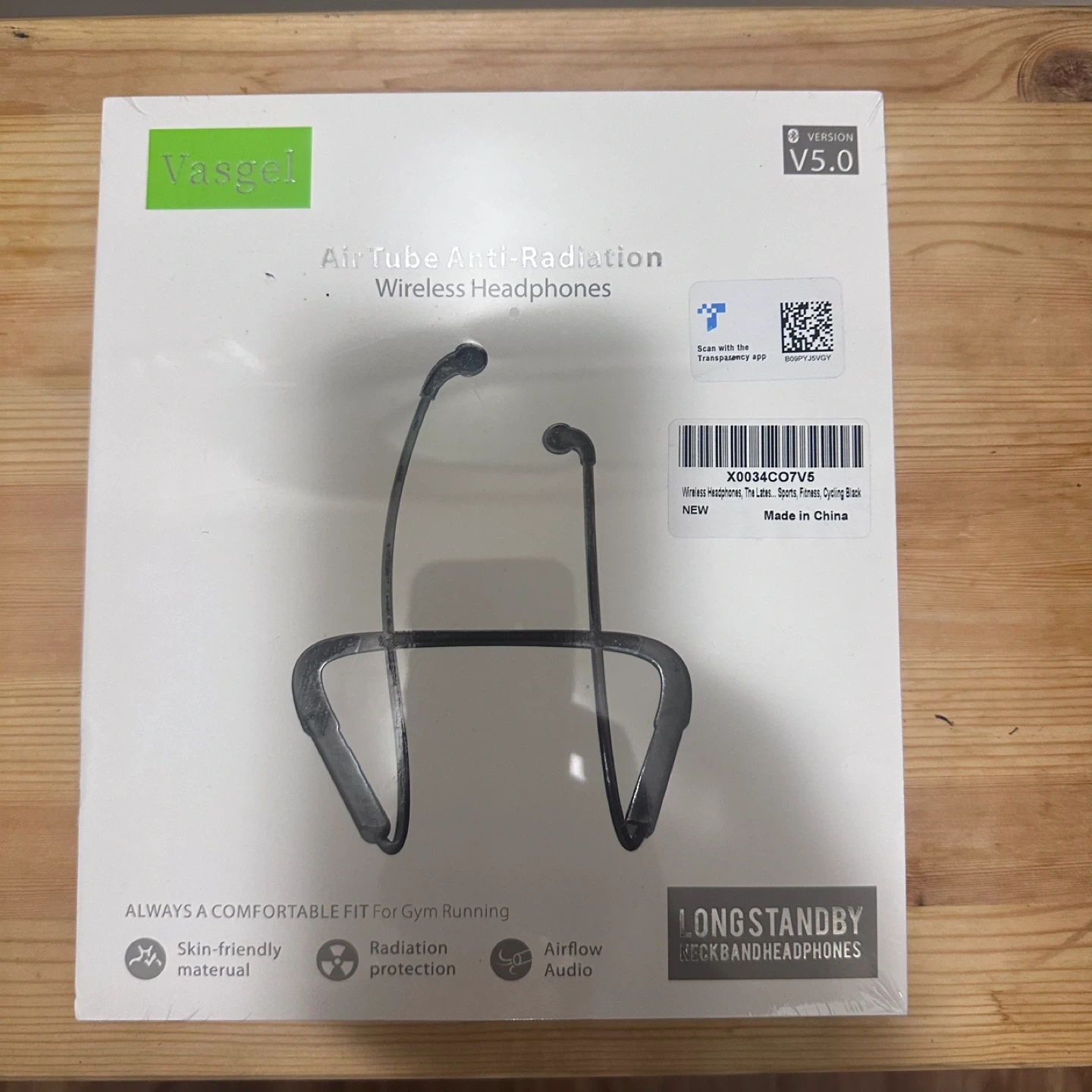 Selling a brand new Vasgel Air Tube Anti-Radiation Wireless Headphones! It's designed for sports, fitness, and cycling. The headphones feature: - Skin-friendly material - Radiation protection - Airflow audio - Long standby neckband headphones