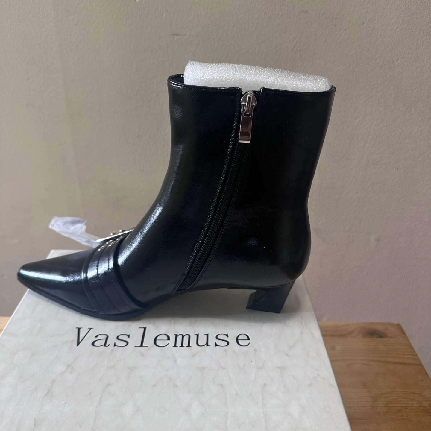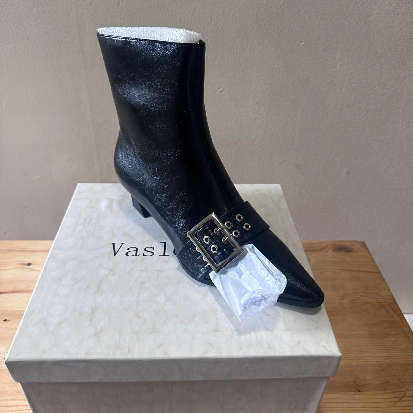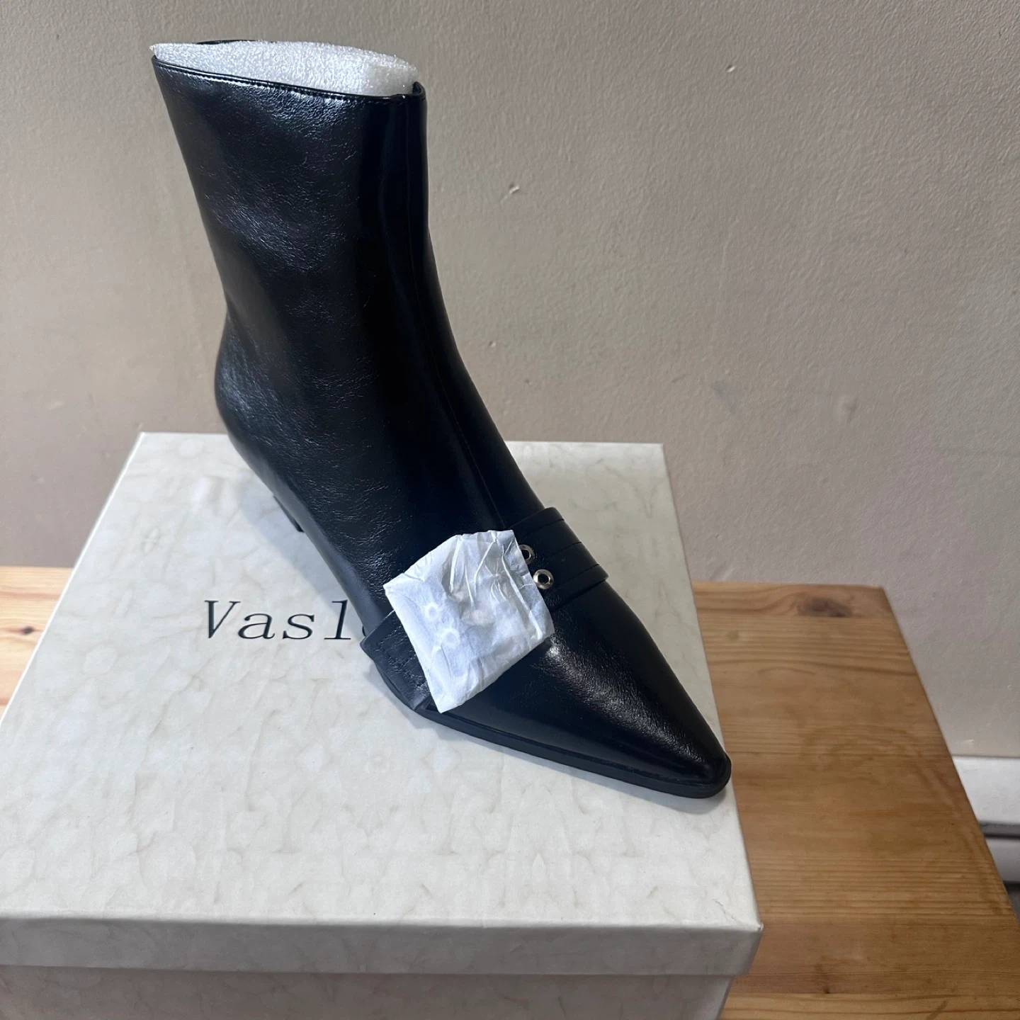 Selling brand new Vaslemuse black leather ankle boots. They come in original boxes. These boots are stylish and perfect for any occasion. I have 5 pairs in size 5 and 3 pairs in size 7. This is the pick up location: 1005 Queens Ave in New West.