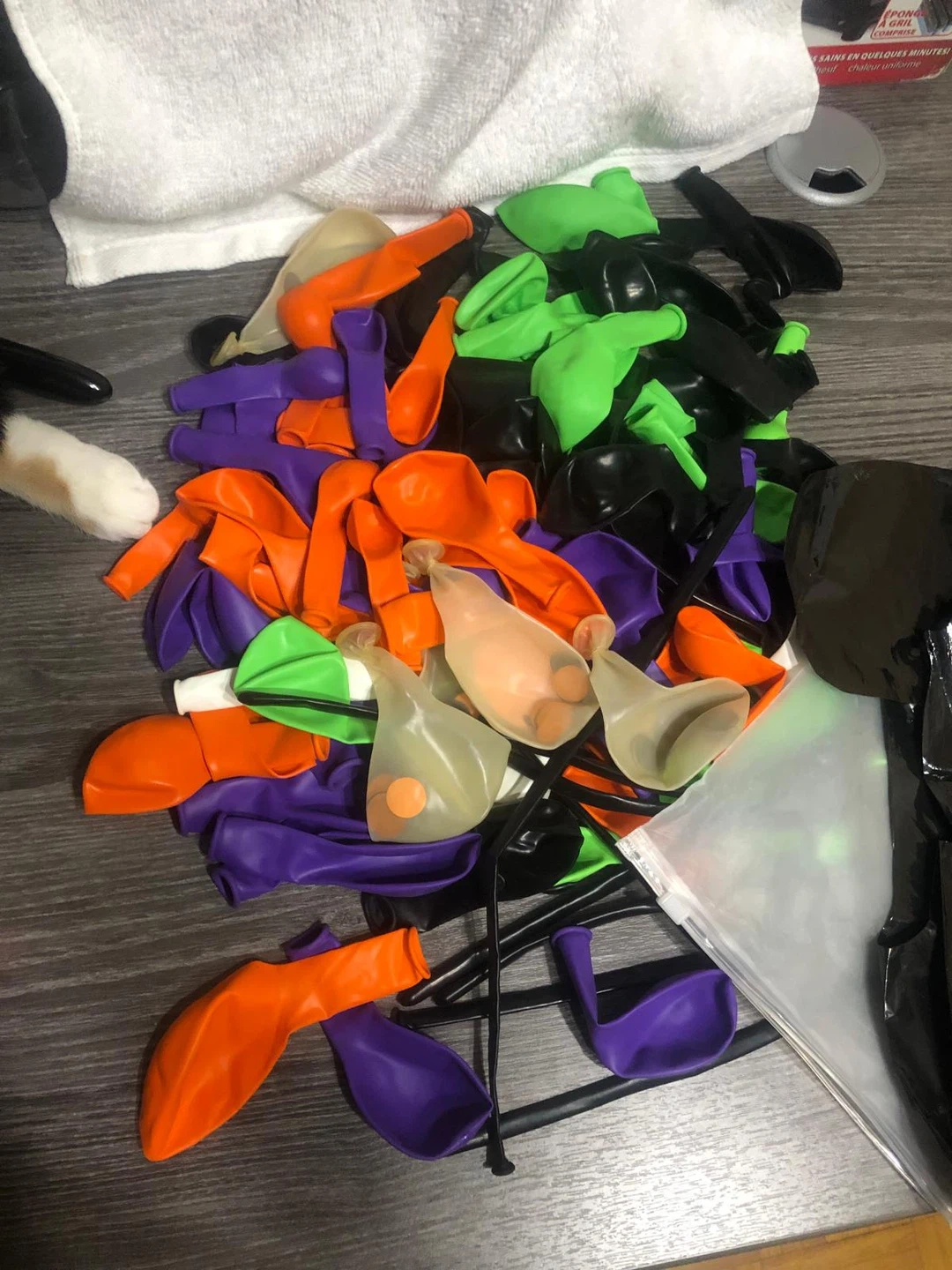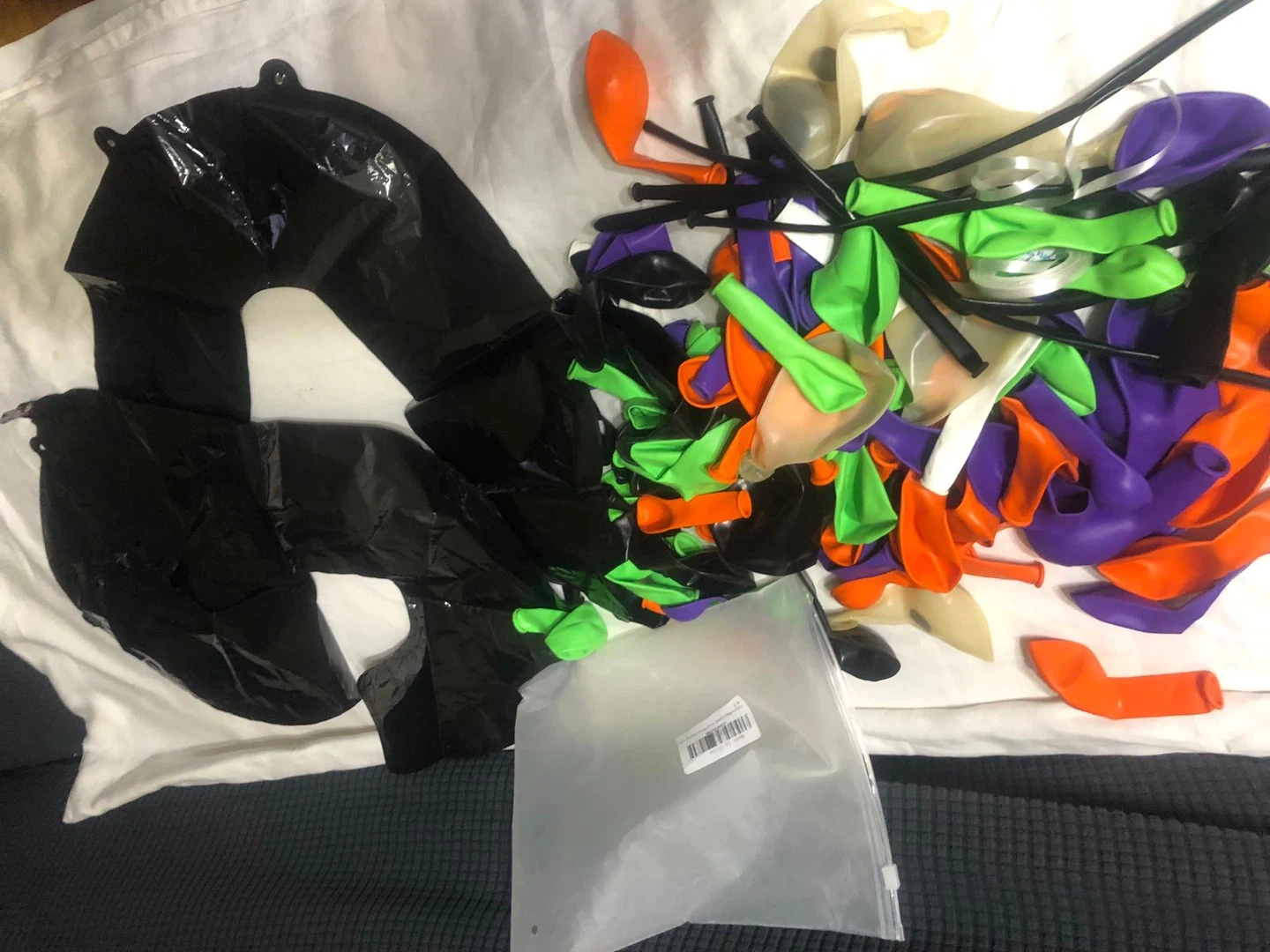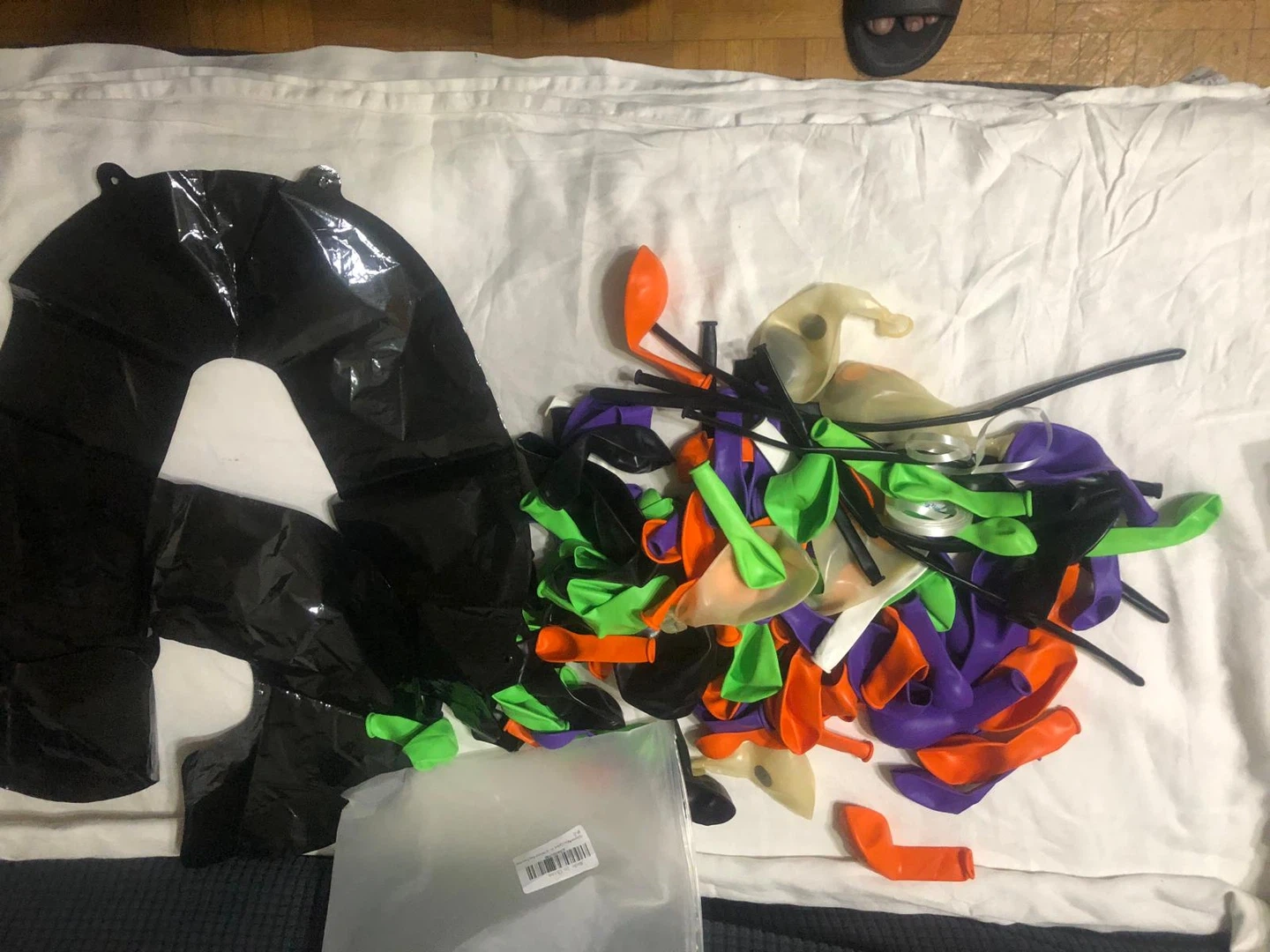 Selling a balloon set! Includes a mix of orange, purple, green, and black balloons, some regular and some large letter balloons. Perfect for decorating for a any party’s !
