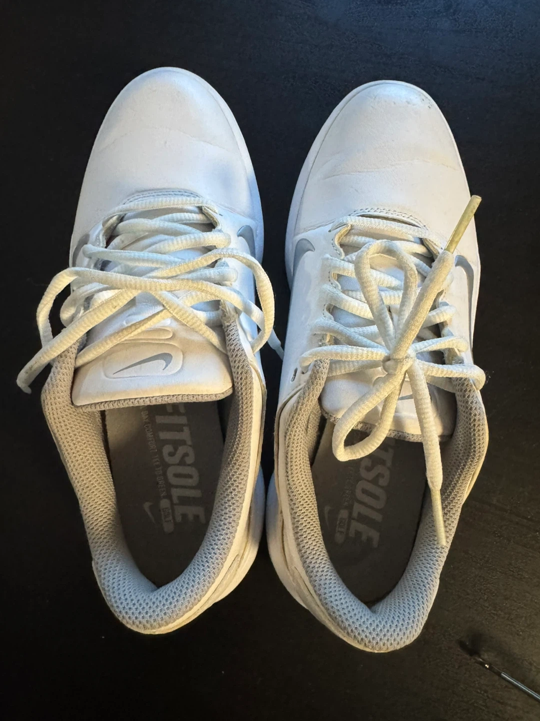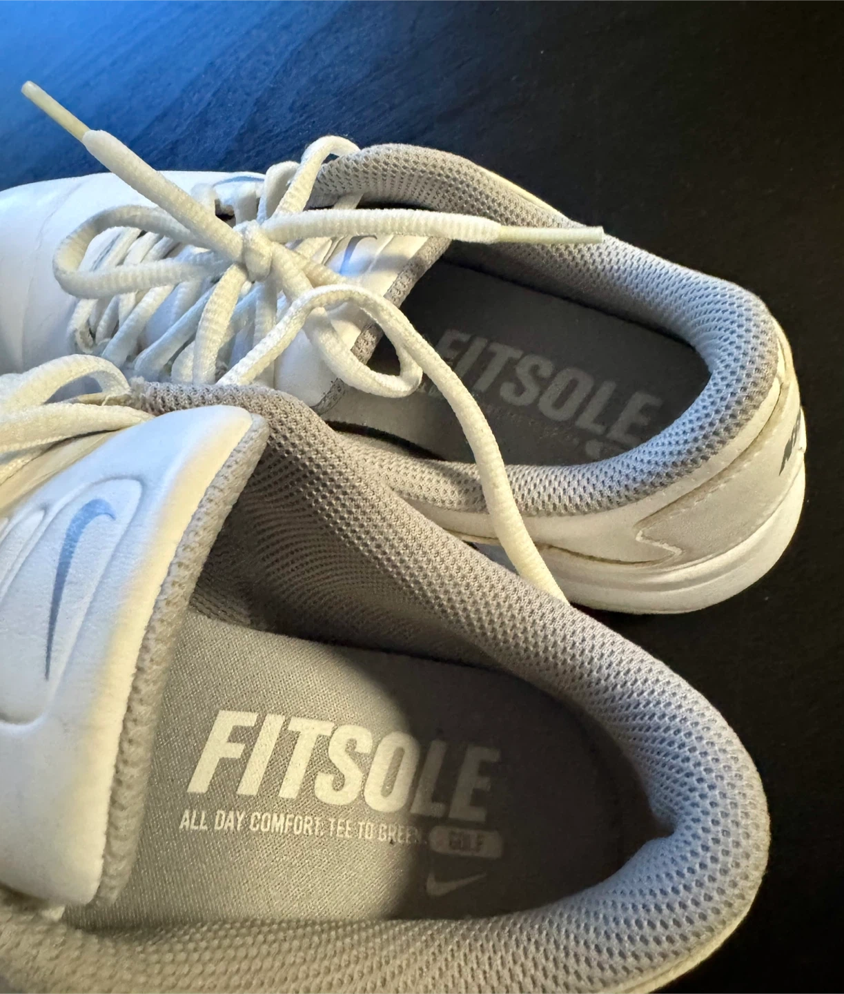 - Nike golf shoes in white with Fitsole insoles for all-day comfort. These shoes are designed for performance on the green. Lace-up closure provides a secure fit. They're ready for your next round!