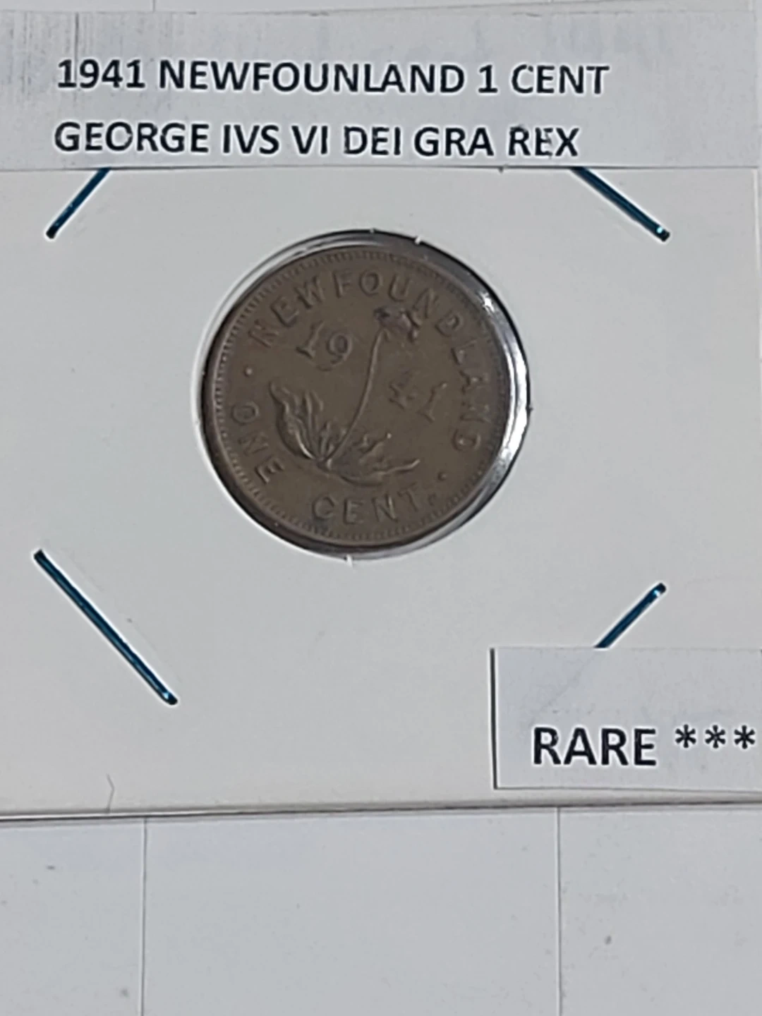 This is a 1941 Newfoundland 1 cent coin. It features King George VI on one side and a plant design on the other. A neat piece for collectors!