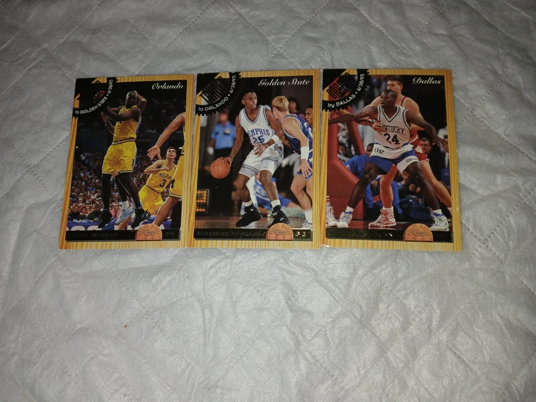 These are classic games basketball trading cards featuring players from Orlando, Golden State, and Dallas. The back of the box indicates they are special editions and part of a limited run of 1 of 25,000.