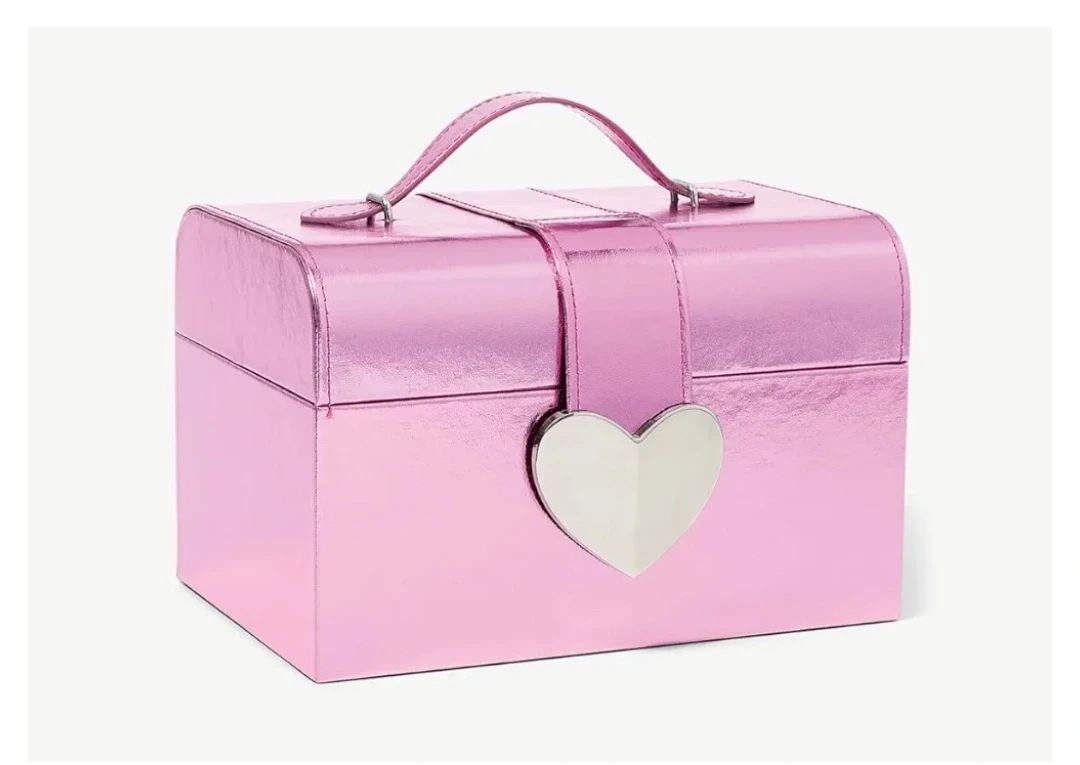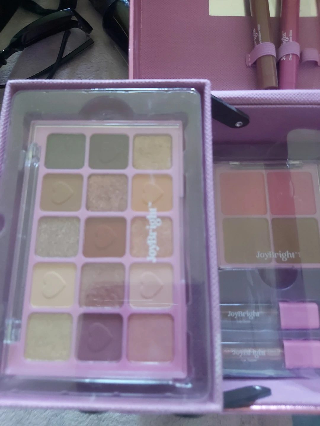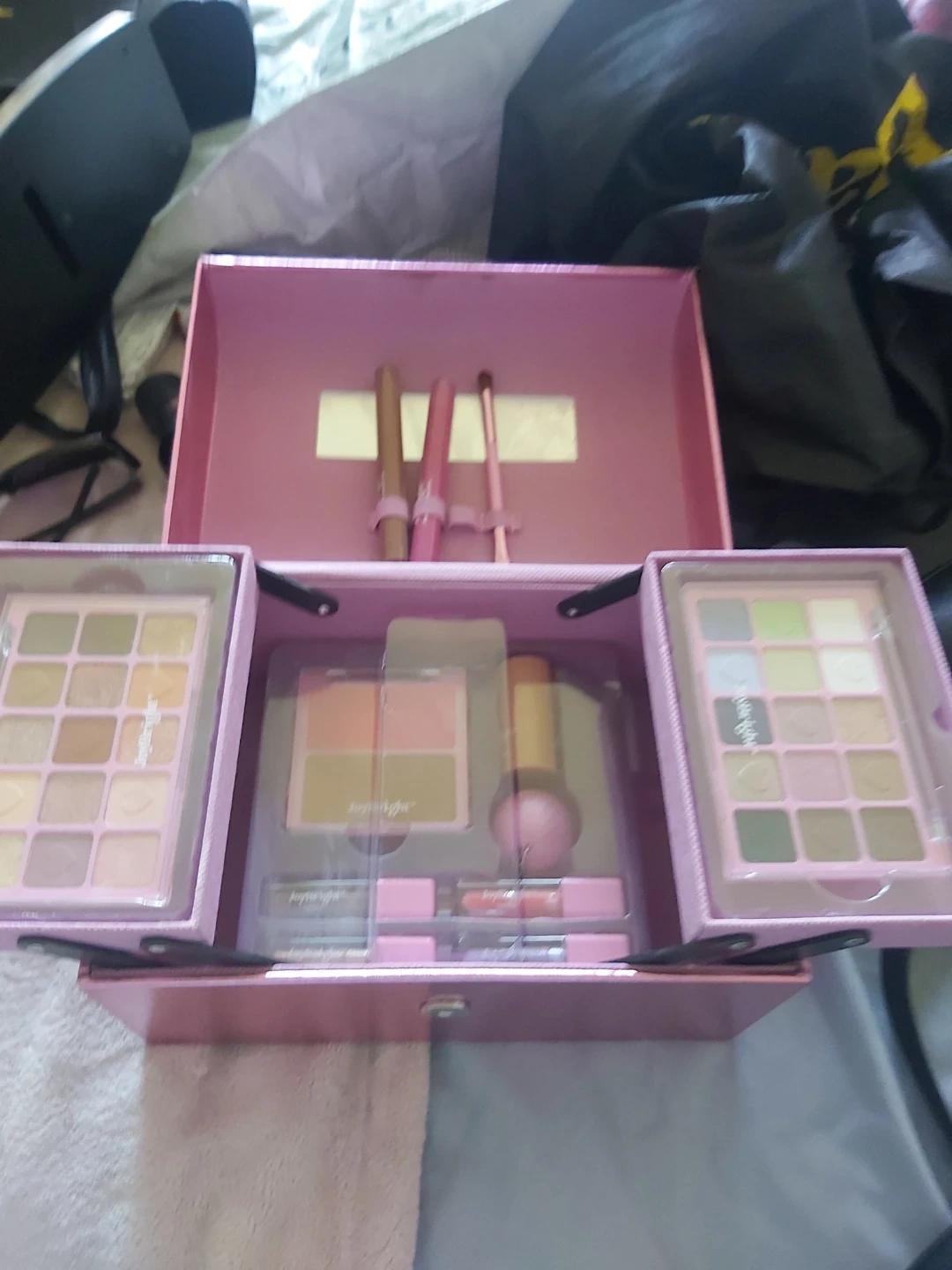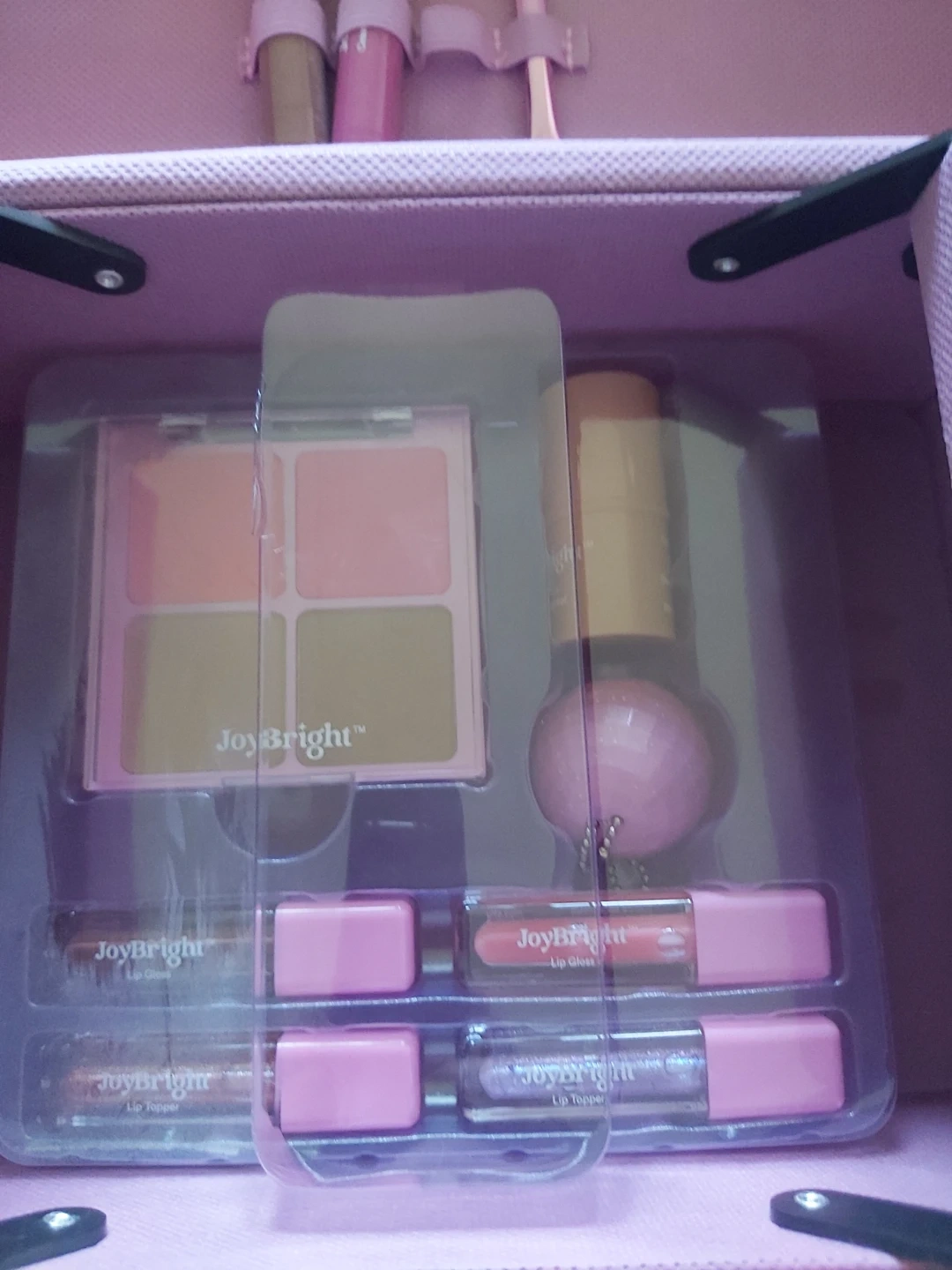 This JoyBright makeup set comes in a pink carrying case with a heart clasp. It includes eyeshadow palettes, blush, lip glosses, and brushes. Perfect for young aspiring makeup artists!