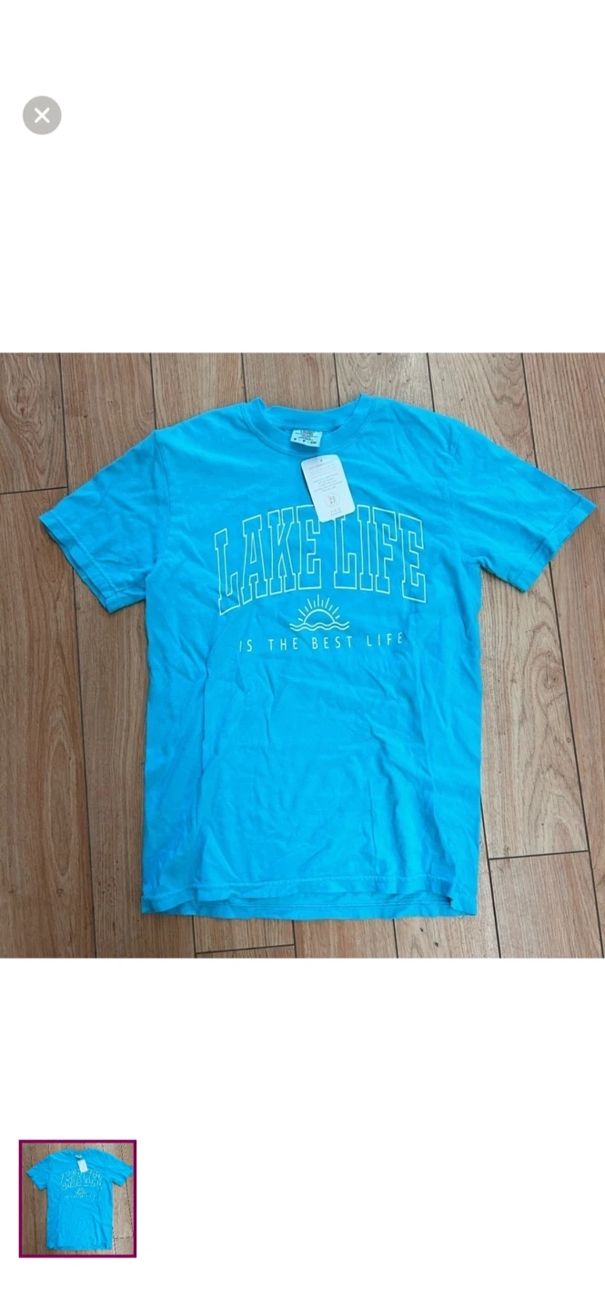 Handmade by a local small shop called Sweetphase. Colour comfort short sleeve T-shirt. Blue lake life. Brand new
