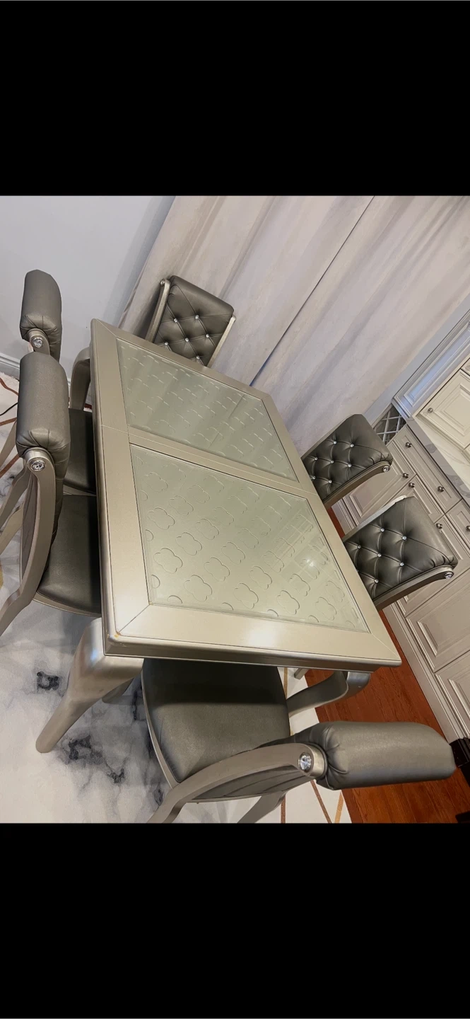 Dining table for sale. It's a rectangle shape and would be perfect for family dinners. All chairs included, good condition. reason on selling is it takes to much space in our home. Open to offers. Need gone ASAP.