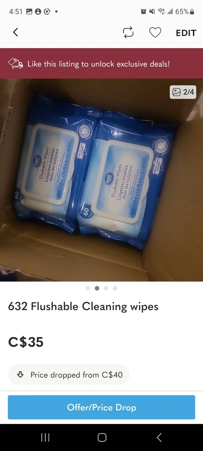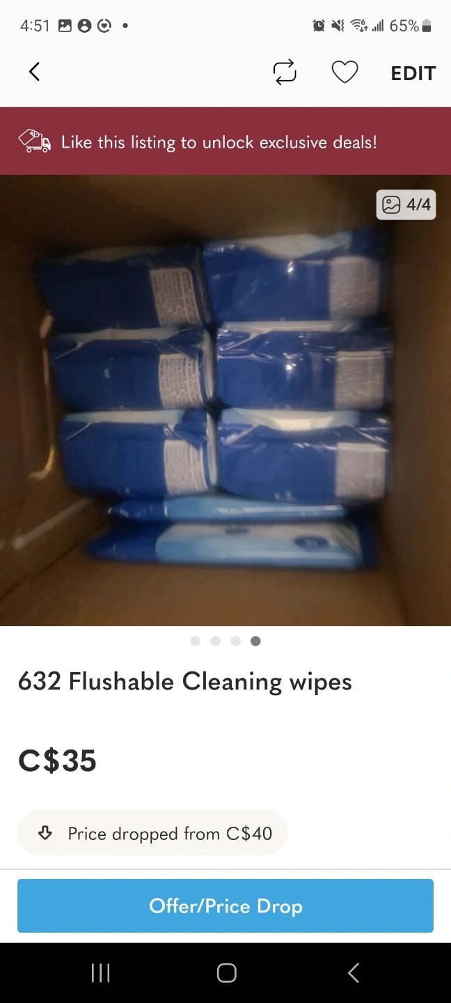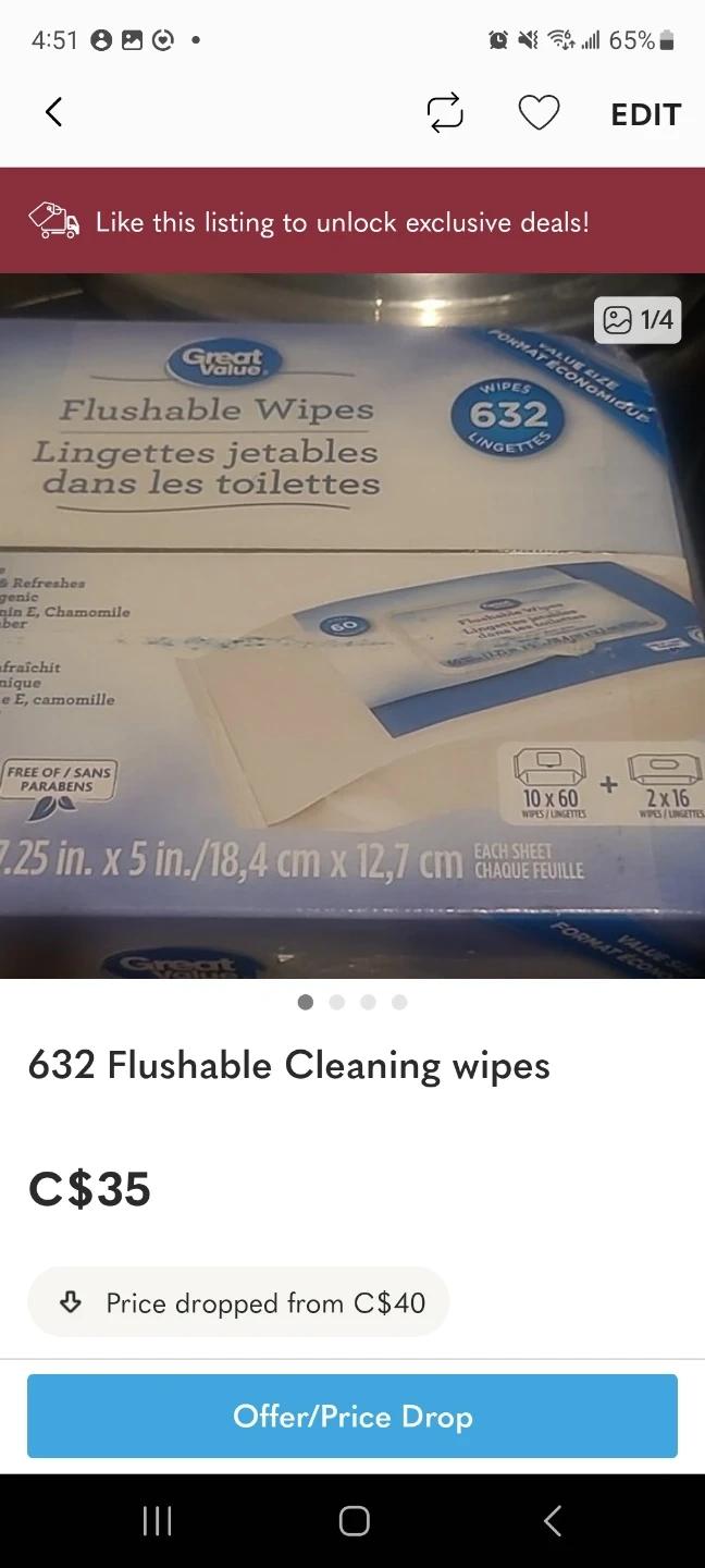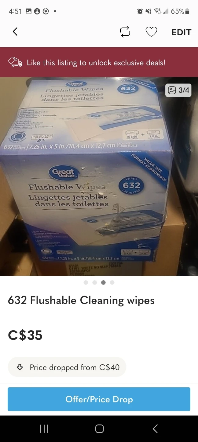 This is a value-size package of 632 Great Value flushable cleaning wipes. They're designed for cleaning the toilet. Contains 10 packs of 60 wipes and 2 packs of 16 wipes.